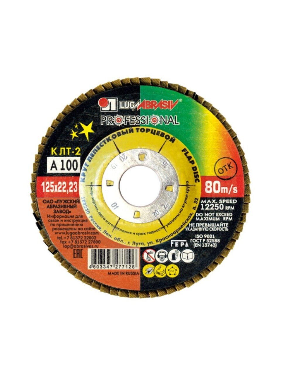 Вы можете приобрести «Круг лепестковый торцевой КЛТ2 для УШМ, LugaAbrasiv, диаметр 125 мм, посадочный диаметр 22 мм, зернистость A100, шлифовальный» и другие товары в нашем интернет-магазине в Ставрополе по низким ценам и с бесплатным самовывозом.