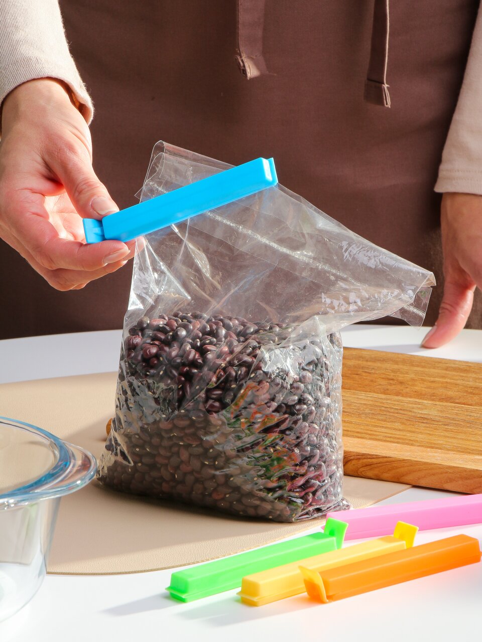 Многие спрашивают, чем зажимы для пакетов отличаются от обычных резинок или прищепок? Пластиковые зажимы обеспечивают плотное закрытие, не деформируют упаковку и не впитывают запахи. Их можно использовать для заморозки, хранения круп, чая, кофе, а также на даче для удобства сортировки семян или специй. Как использовать зажимы для пакетов? Просто защёлкните их на открытом крае пакета — это займёт пару секунд и сохранит свежесть содержимого.