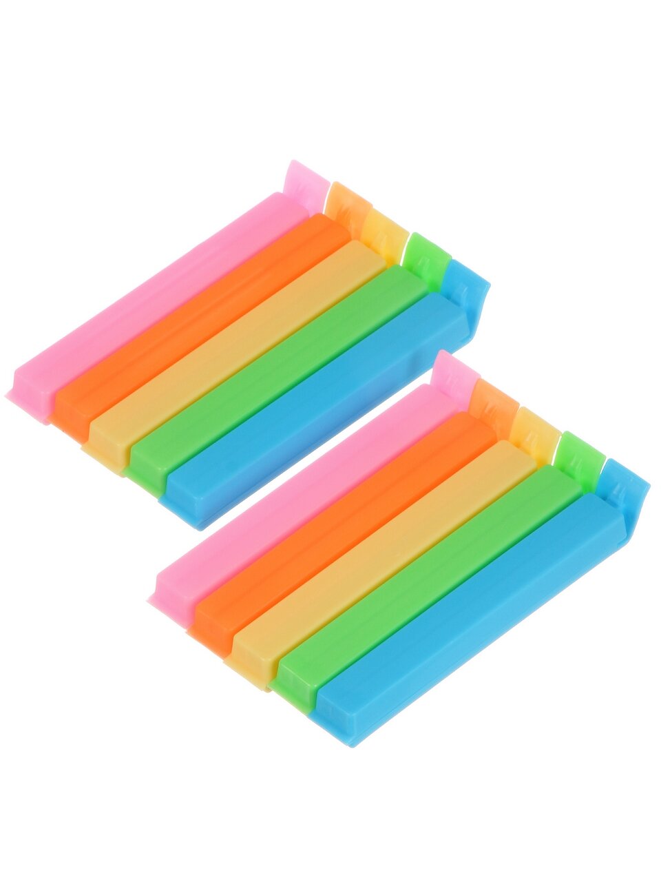 - Универсальный размер 11х1.4 см, прочный пластик, набор из 10 разноцветных зажимов для многократного использования