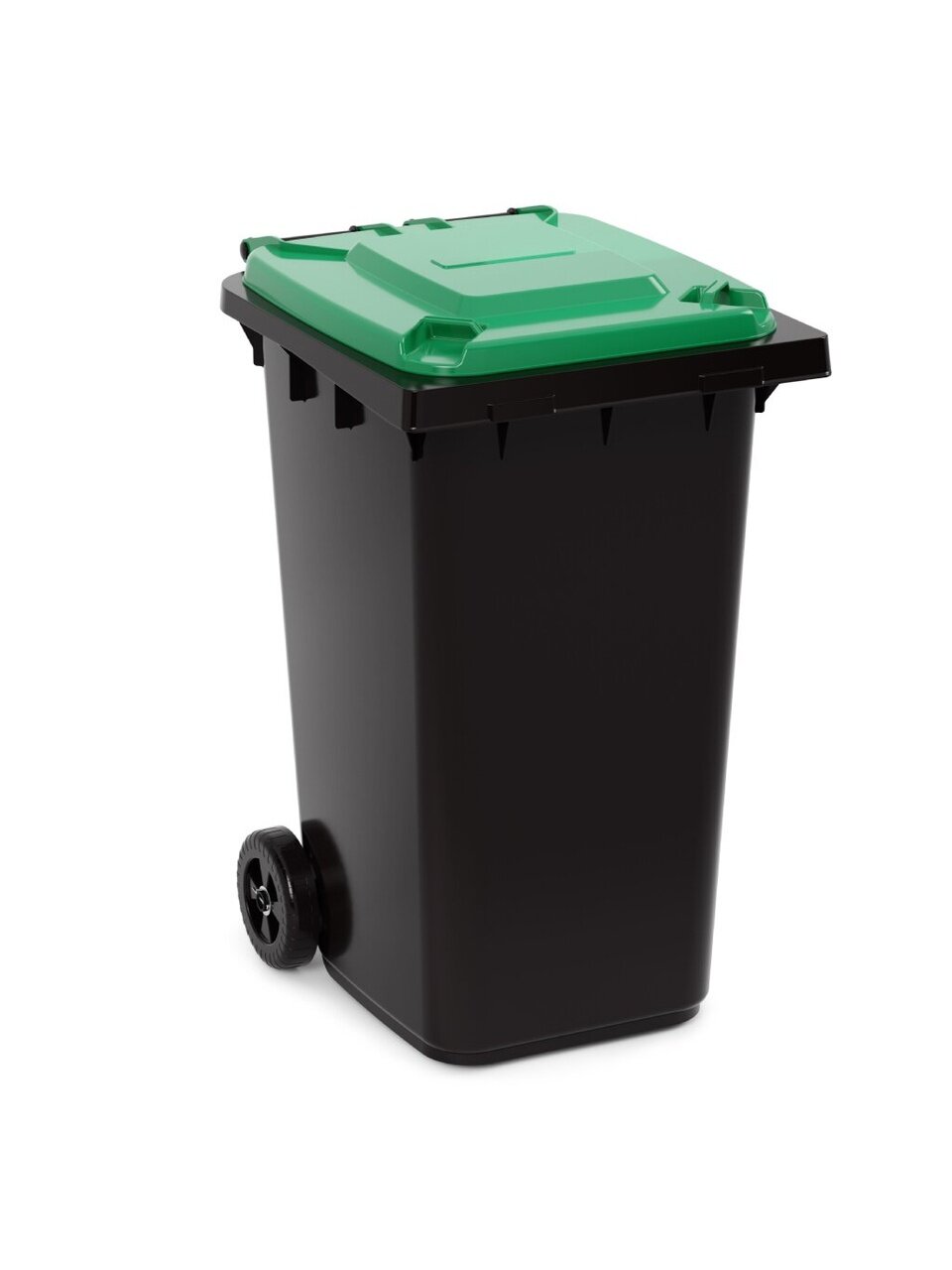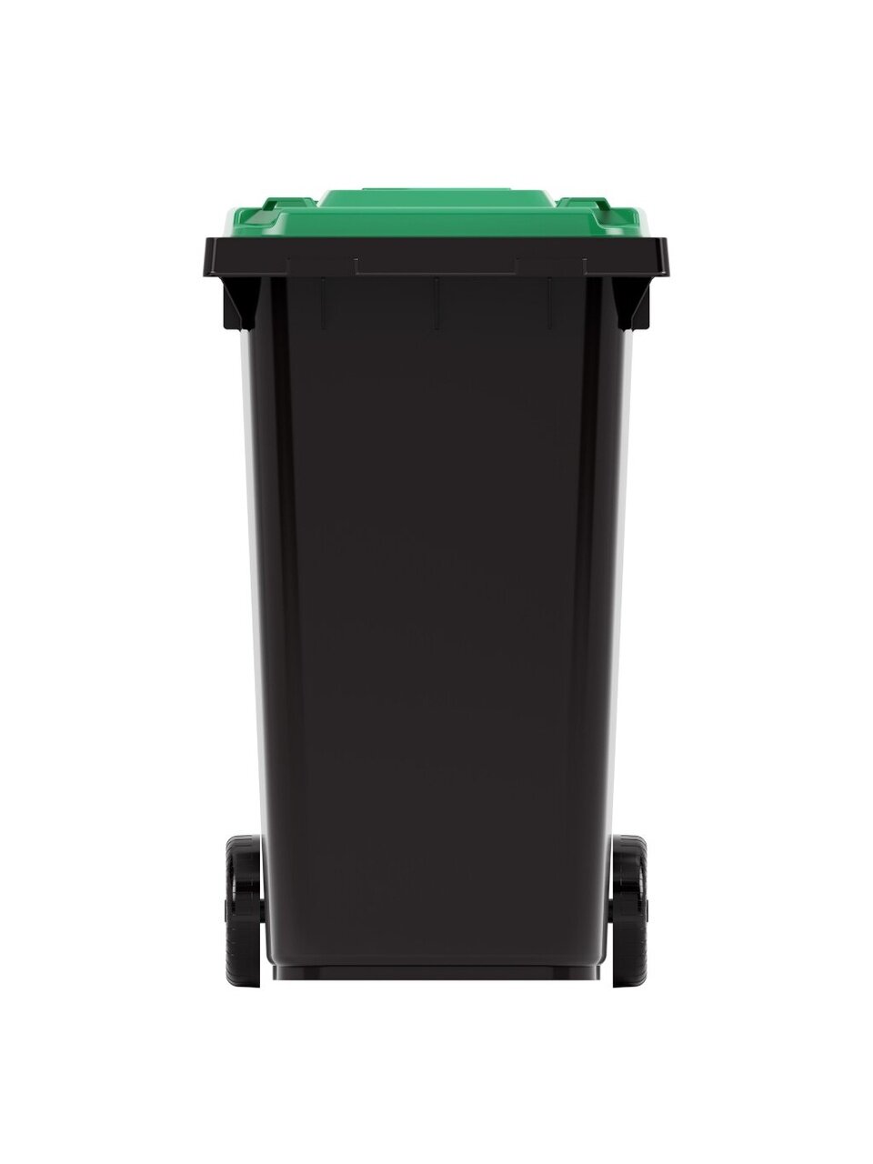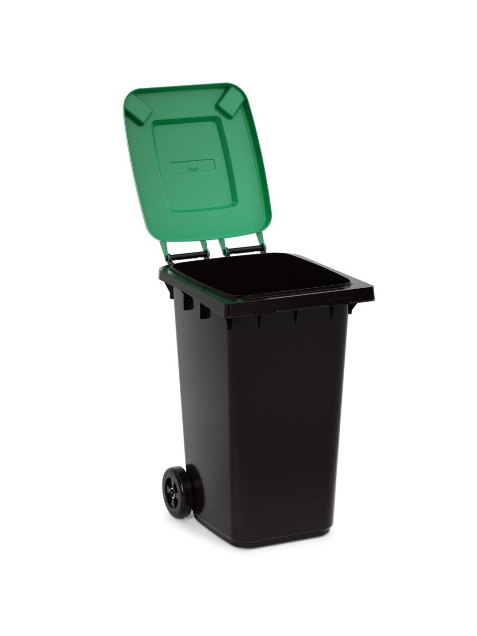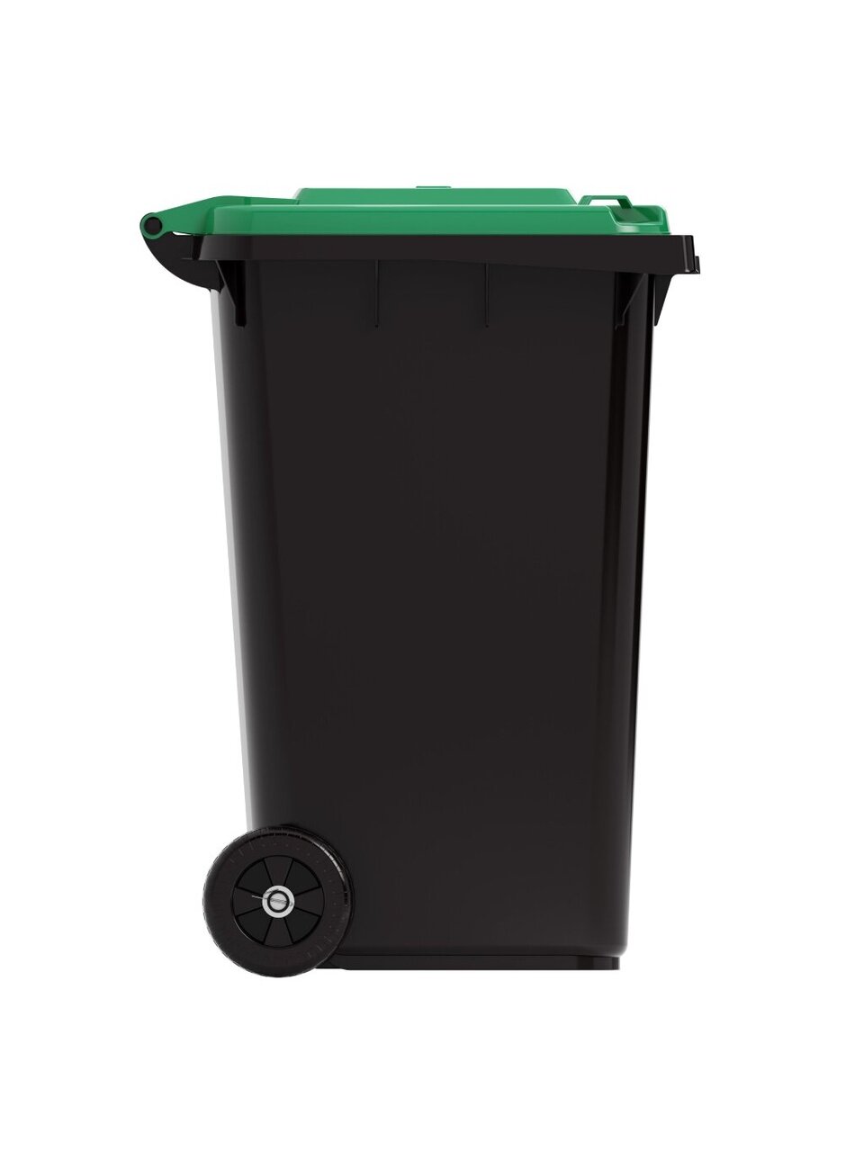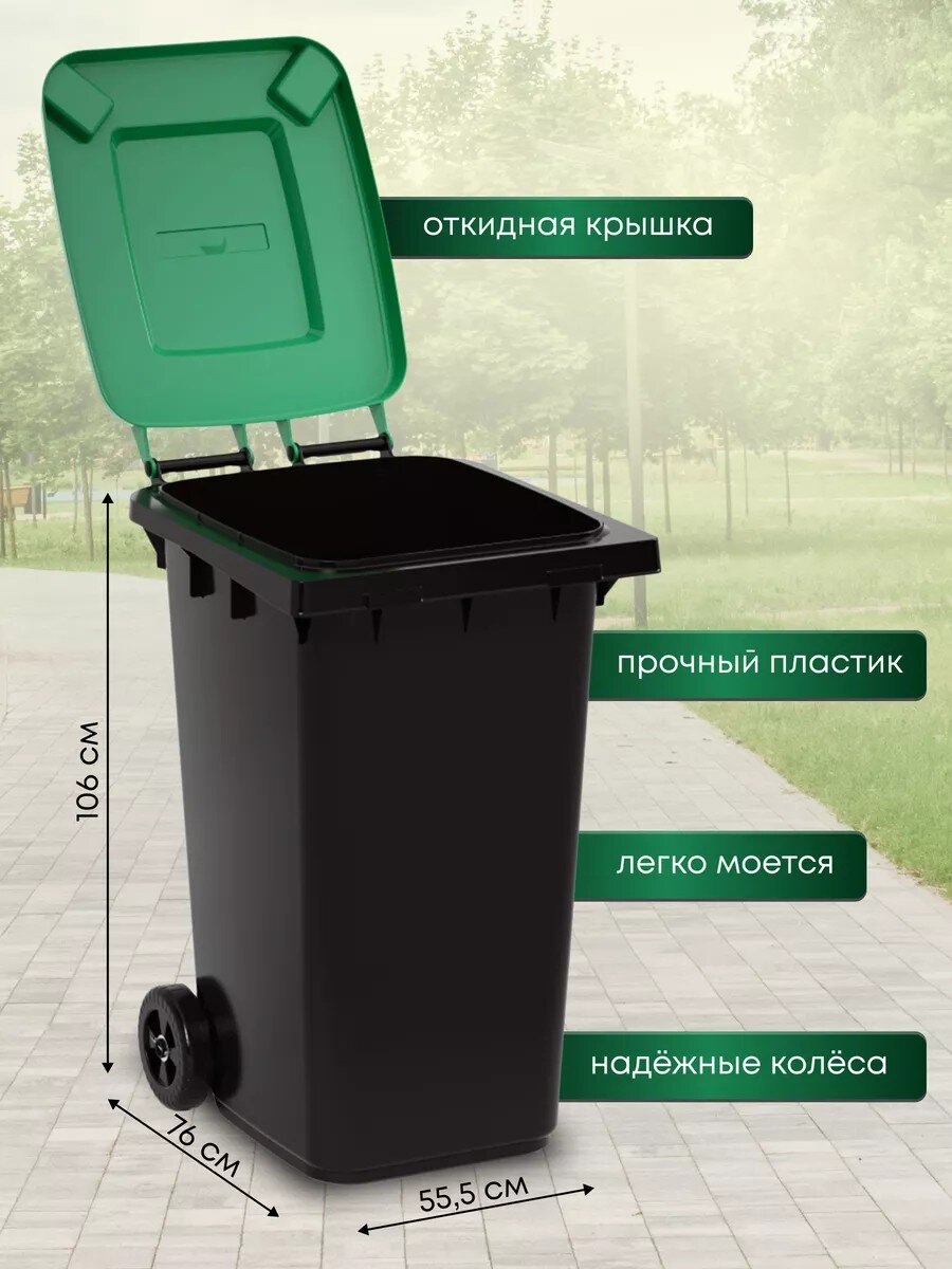 Бак для мусора пластик, 240 л, с крышкой, с колесами, 55.5х76х106 см, черно-зеленый, Альтернатива, М5937