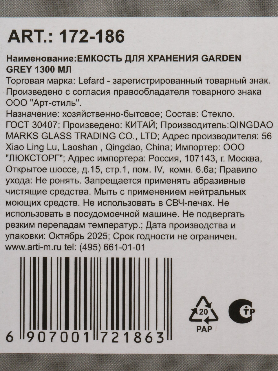 Банка Lefard Garden Grey объемом 1.3 литра — это практичное решение для хранения сыпучих продуктов: круп, сахара, макарон, орехов. Прозрачное рельефное стекло позволяет видеть содержимое, а герметичная крышка защищает от влаги и посторонних запахов. Часто спрашивают, «как выбрать банку для круп» — обратите внимание на материал и плотность прилегания крышки: стекло не впитывает запахи, легко моется в посудомоечной машине, а герметичная крышка гарантирует долгий срок хранения.