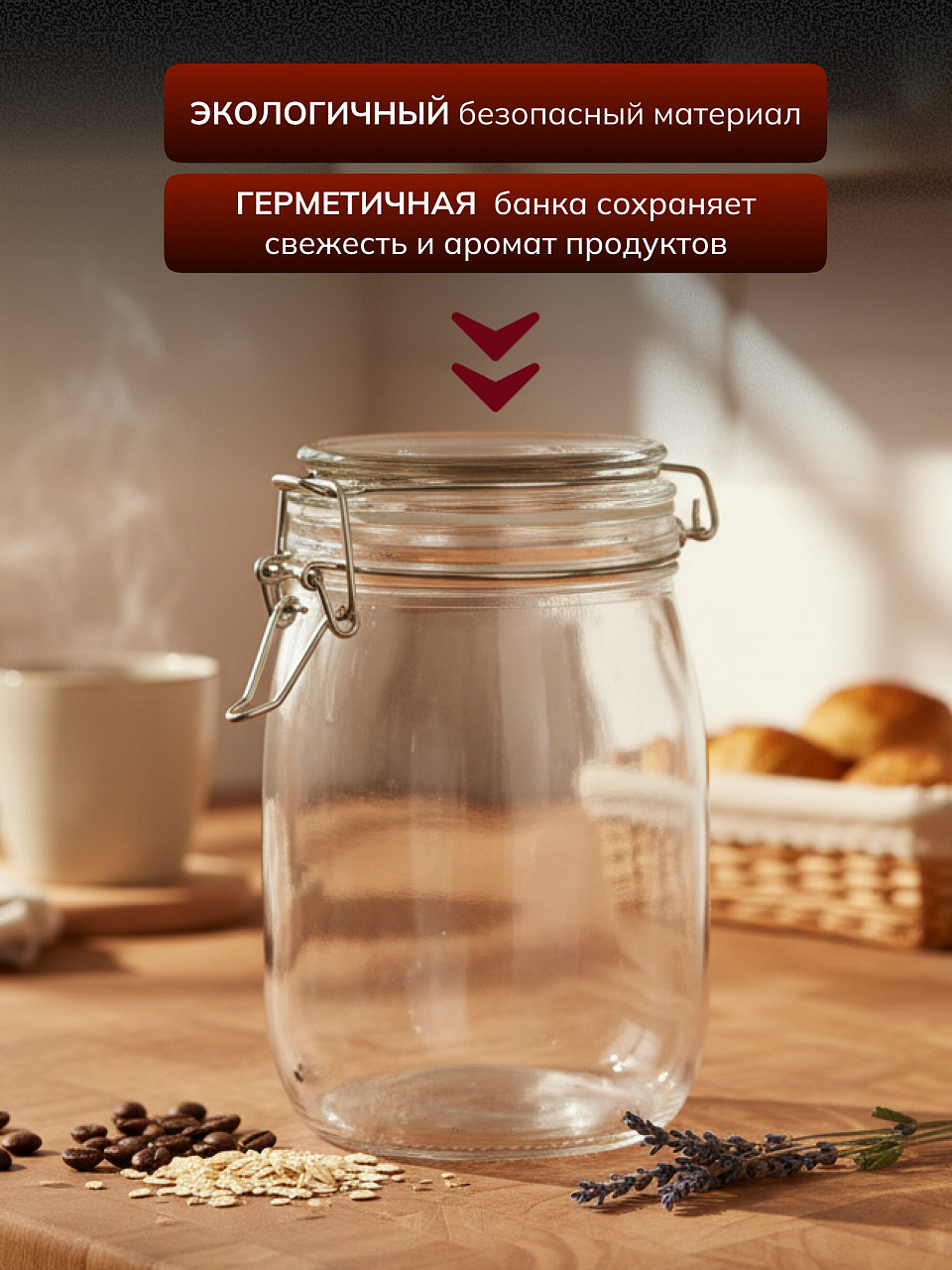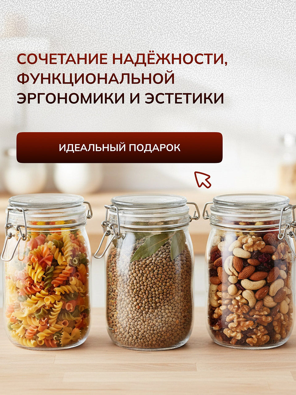 Банка для сыпучих продуктов 0.75 л из стекла с герметичной крышкой — идеальное решение для хранения круп, сахара, специй. Безопасность, стиль и долговечность для вашей кухни.