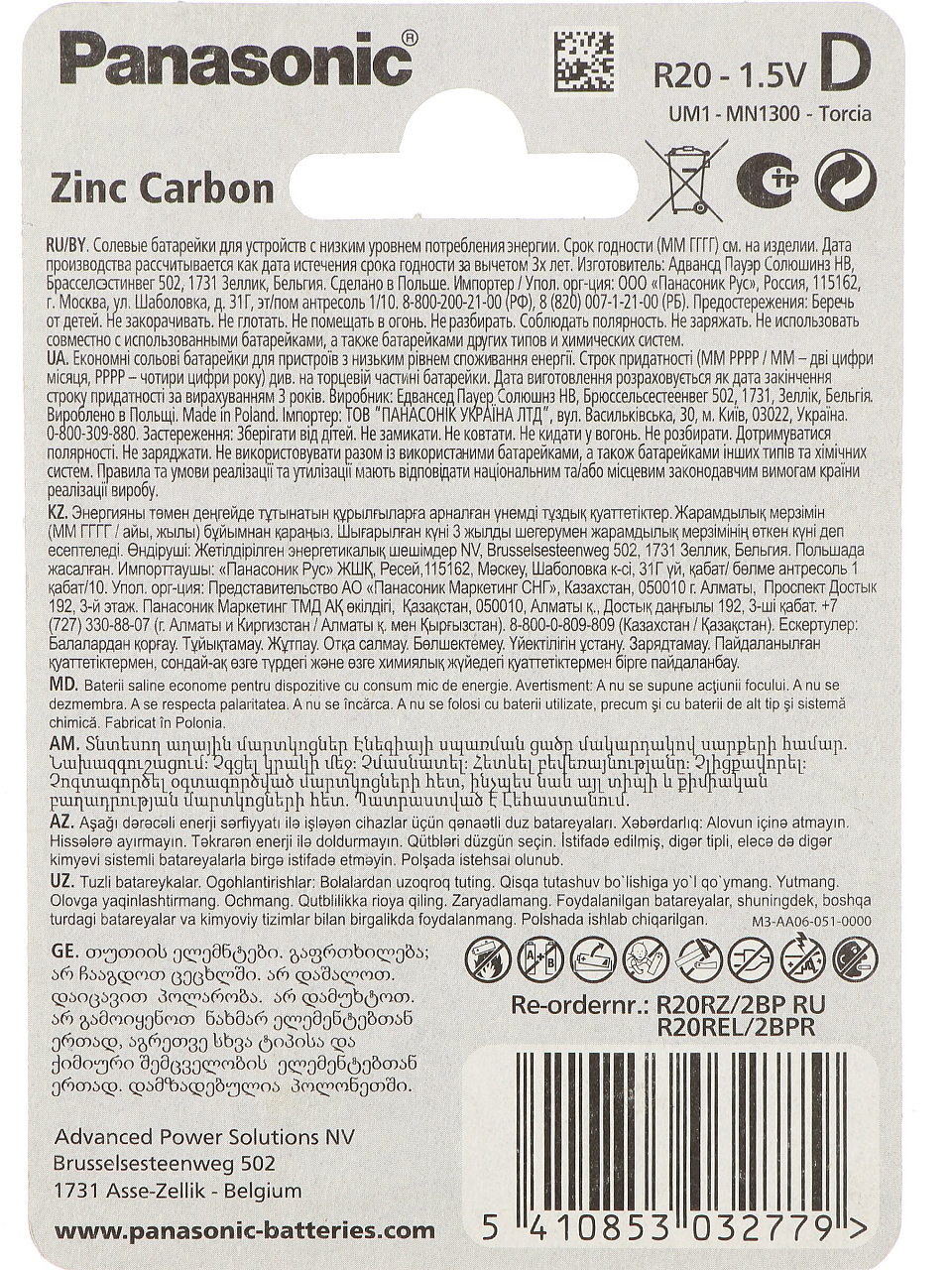Вы можете приобрести «Батарейка Panasonic, D (R20), Zinc-carbon, солевая, 1.5 В, спайка, 2 шт» и другие товары в нашем интернет-магазине в Клинцах по низким ценам и с бесплатным самовывозом.