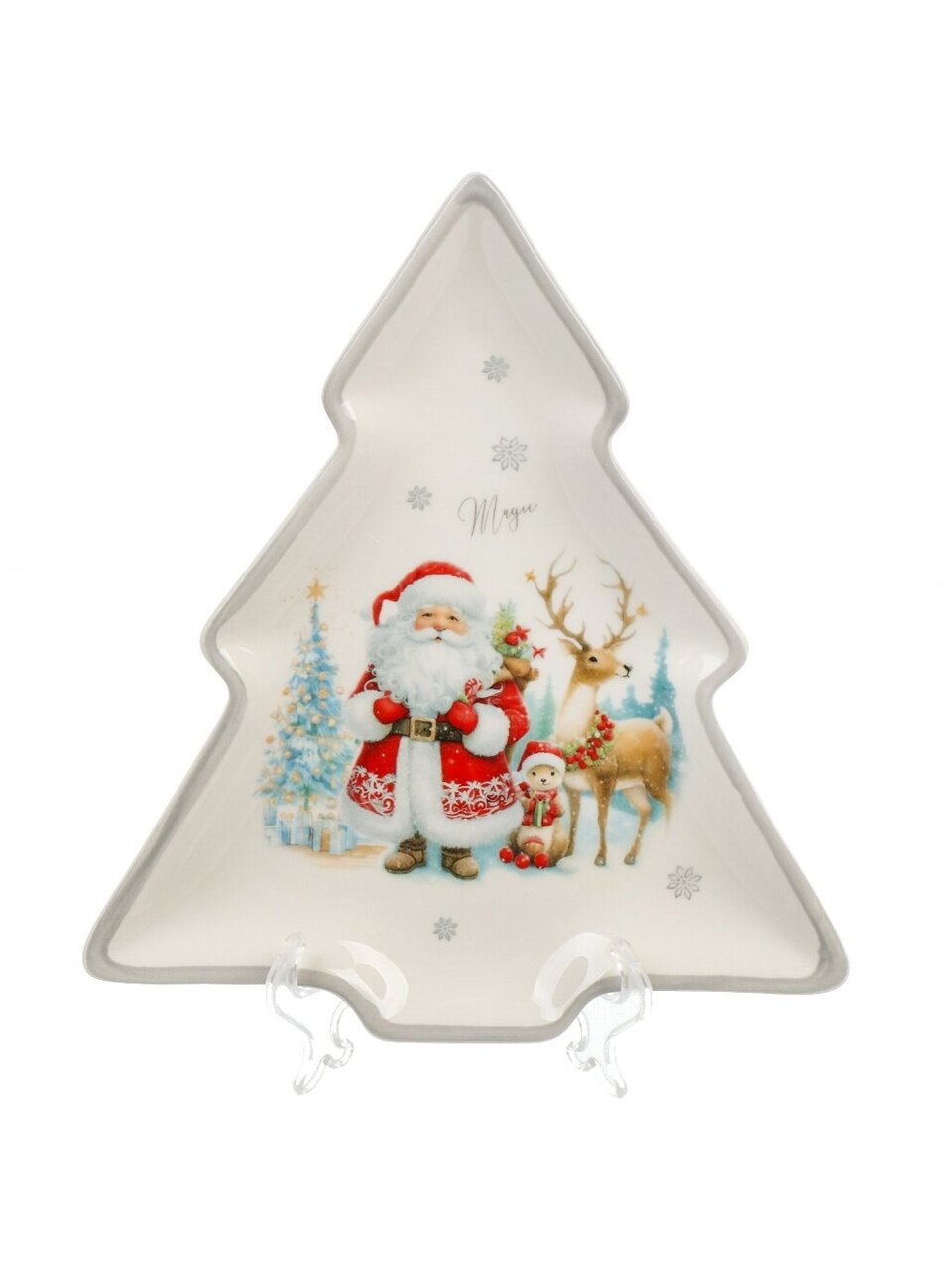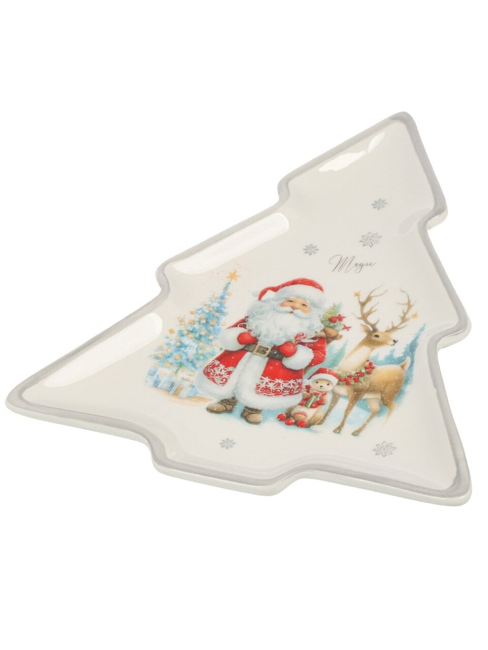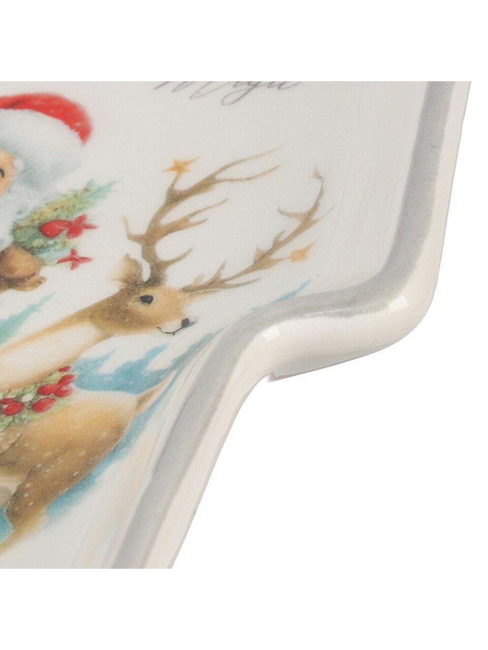 Ширина 23 см, длина 20,2 см, высота бортиков 2,2 см. Форма — елка, материал — доломит, модель «Снежные забавы».
