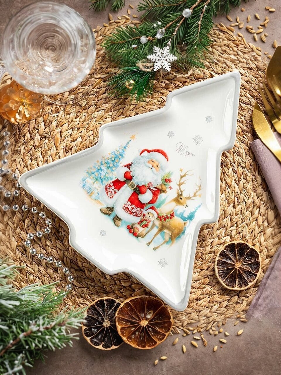 Как выбрать новогоднее блюдо для сервировки? Daniks «Снежные забавы» — это не просто праздничная посуда, а функциональный акцент для любого стола. Благодаря прочному доломиту и бортикам блюдо сохраняет форму и предотвращает проливание, что особенно важно для закусок и салатов. Уникальная форма елки и зимний рисунок делают его центром внимания, а отсутствие крышки и подставки упрощает хранение.