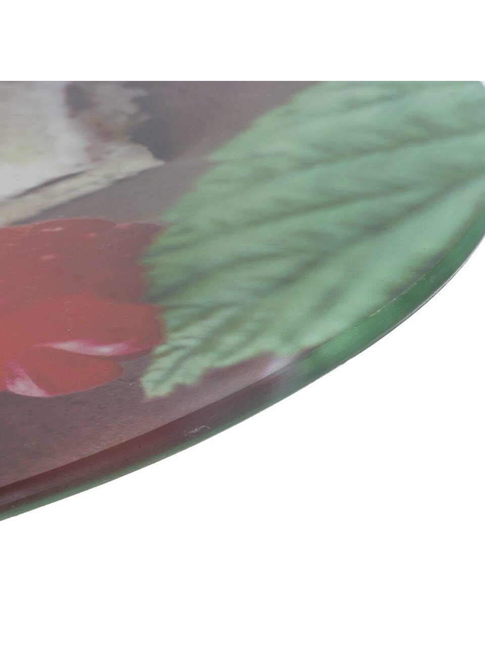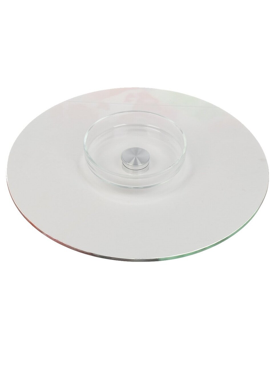 В отличие от обычных сервировочных тарелок, данная модель оснащена вращающейся подставкой, выполнена из прочного стекла с рисунком, диаметр 28 см, не используется в СВЧ, подходит для праздничной сервировки.