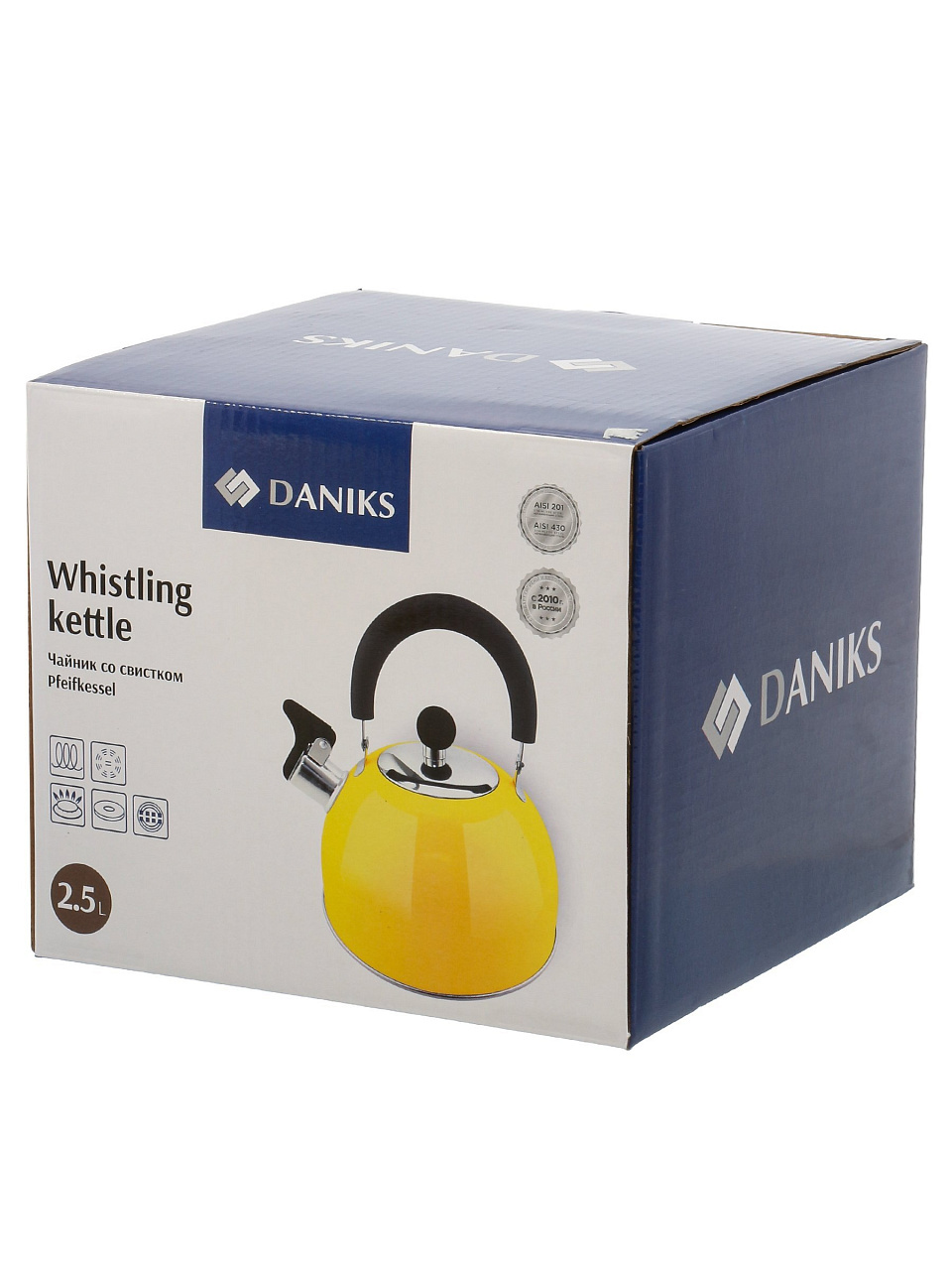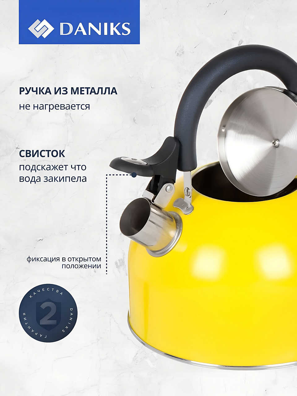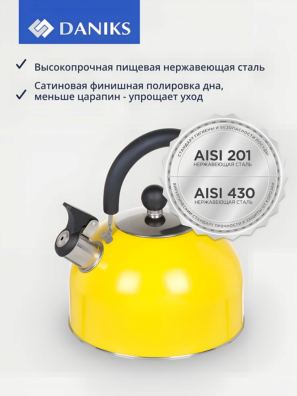 Чайник Daniks 2.5 л из нержавеющей стали: практичный выбор для дома и дачи, яркий дизайн, свисток и металлическая ручка по выгодной цене