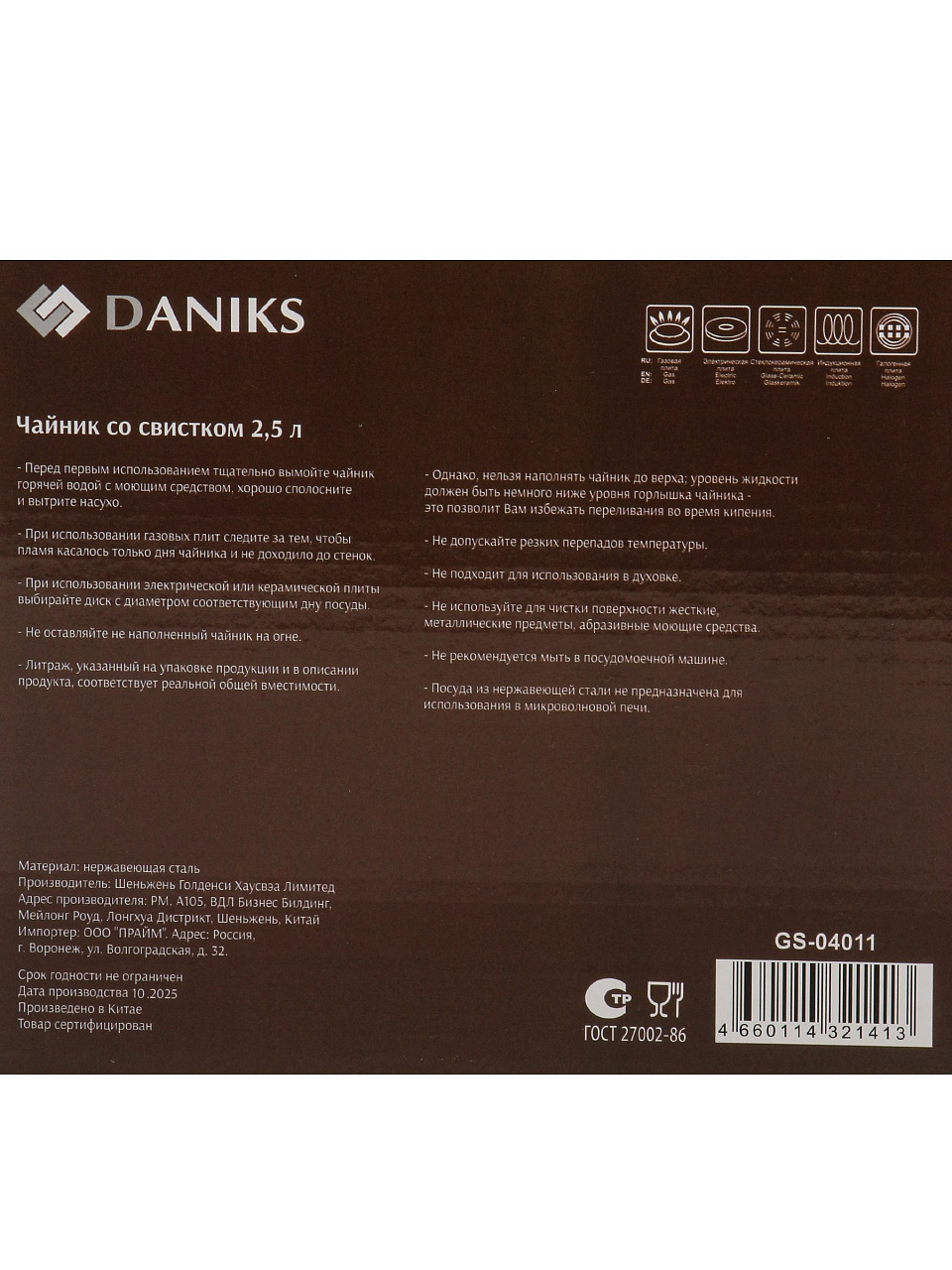 Если вы ищете недорогой чайник для дачи или стильный подарок, Daniks 2.5 л сочетает в себе функциональность, прочность и современный дизайн. Гарантия 12 месяцев и проверенное качество производителя — ваш уверенный выбор. Оформите заказ онлайн и получите надёжный чайник с быстрой доставкой!
