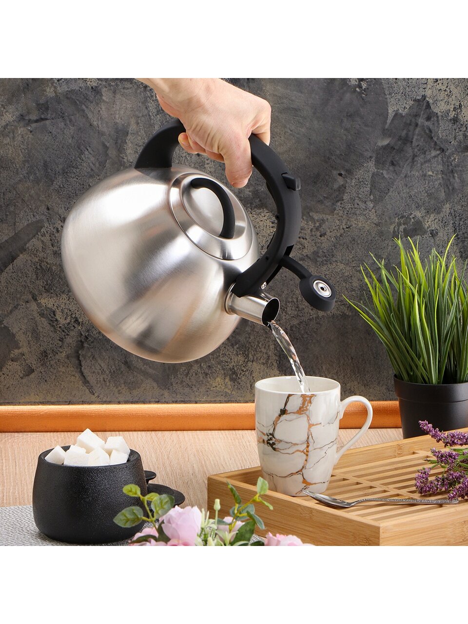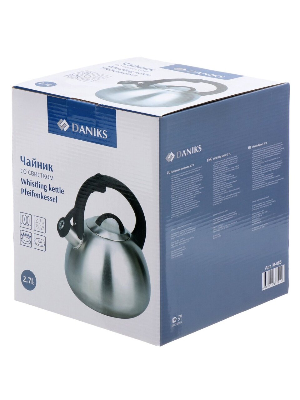 Вы можете приобрести «Чайник нержавеющая сталь, 2.7 л, со свистком, матовый, ручка бакелитовая, с силиконовым покрытием, Daniks, индукция, стальной, M-085» и другие товары в нашем интернет-магазине в Липецке по низким ценам и с бесплатным самовывозом.