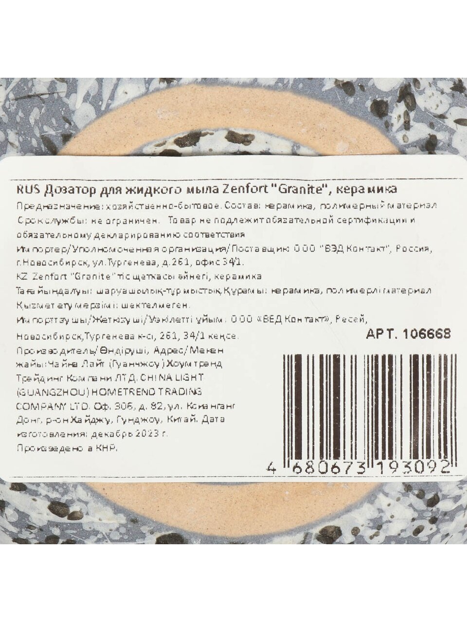 Дозатор для жидкого мыла Zenfort Granite: стильная керамика 380 мл для ванной и кухни, долговечность, удобство, премиальный дизайн — выгодно купить онлайн.