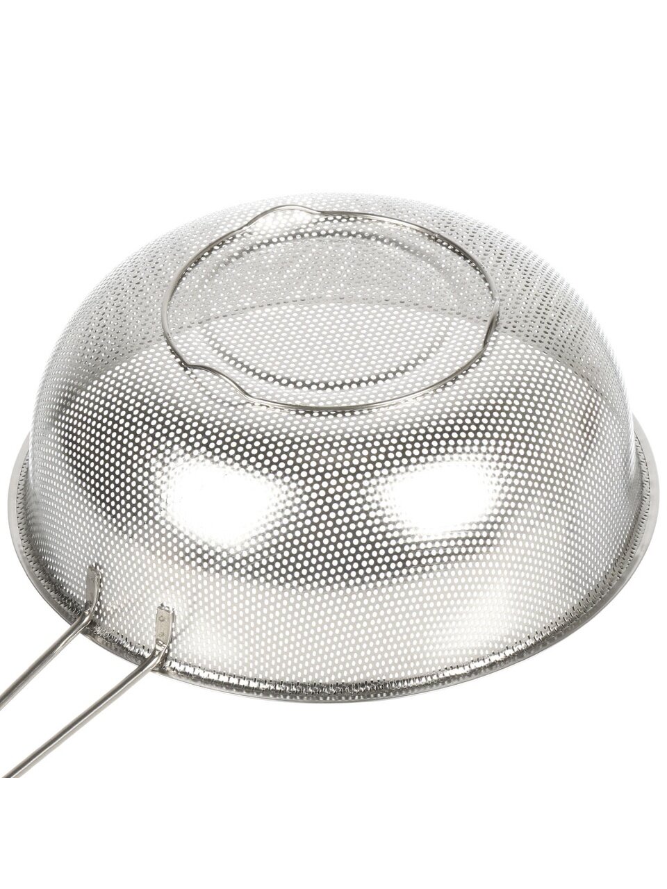 Нержавеющая сталь устойчива к коррозии, не впитывает запахи, выдерживает высокие температуры и частое мытьё. Такой дуршлаг долговечен и безопасен для любых продуктов.
