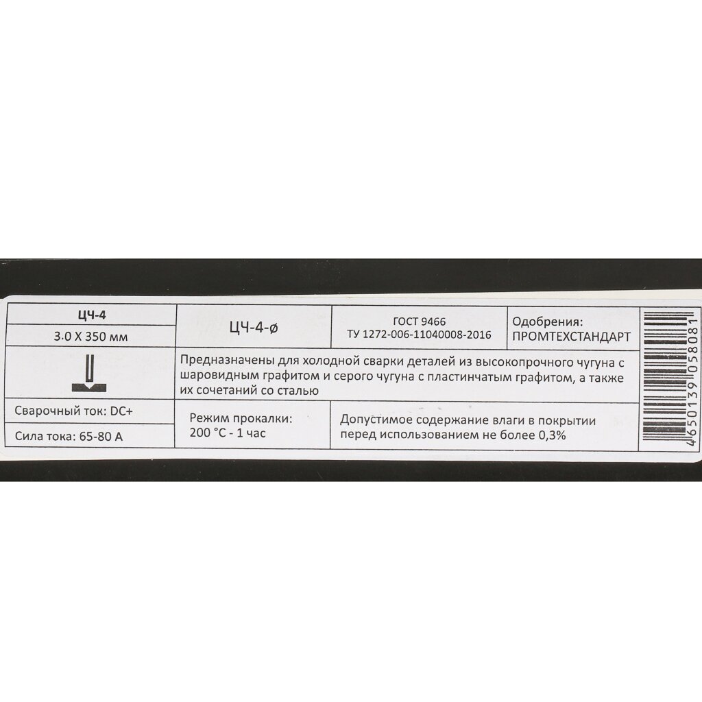 Электроды имеют диаметр 3 мм и длину 350 мм, что оптимально для сварки изделий из чугуна различной толщины.