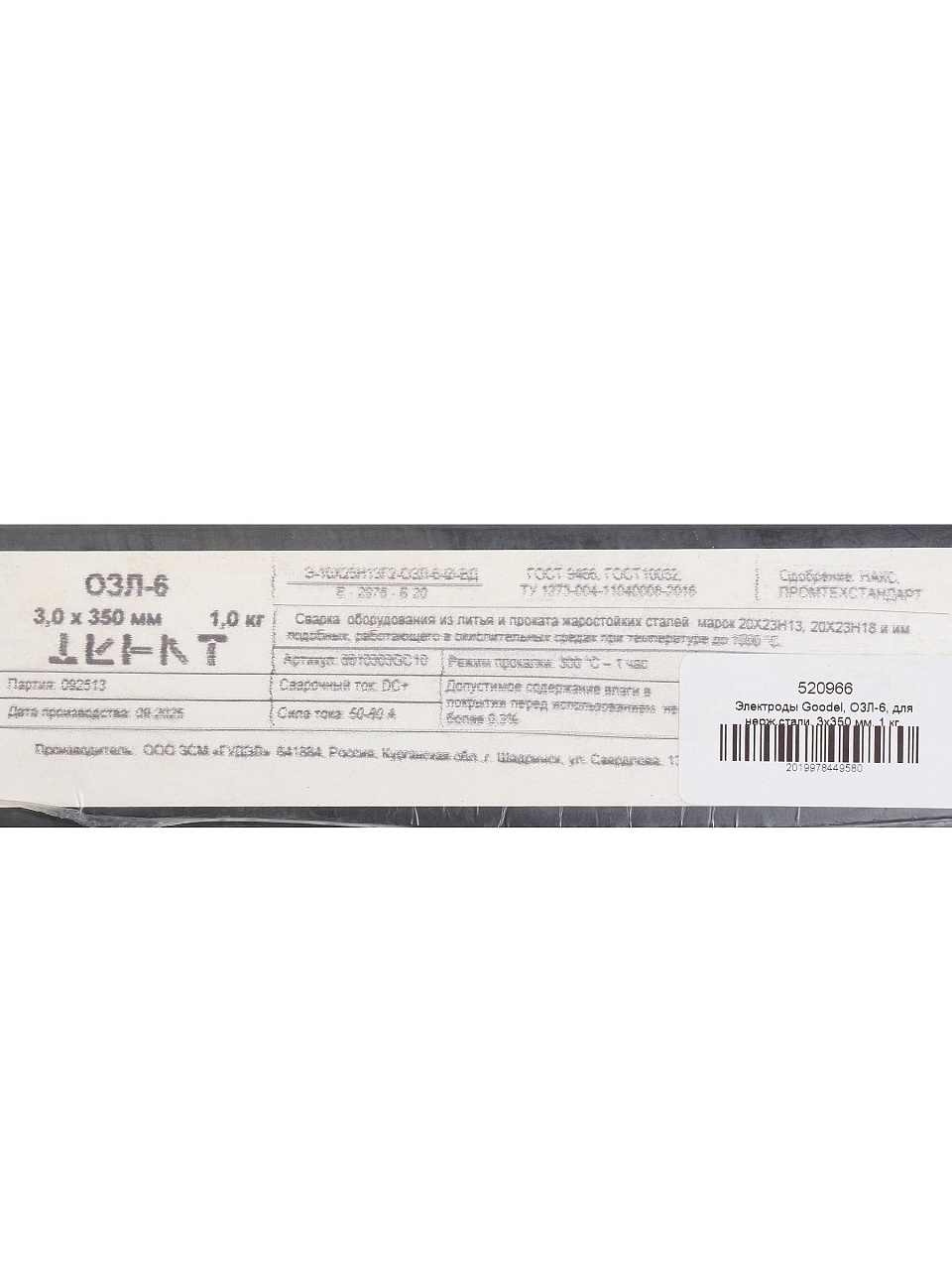 Электроды Goodel ОЗЛ-6 для нержавеющей стали 3х350 мм — надёжная сварка без дефектов, оптимальный выбор для дома и профессионалов. 1 кг в удобной картонной коробке.