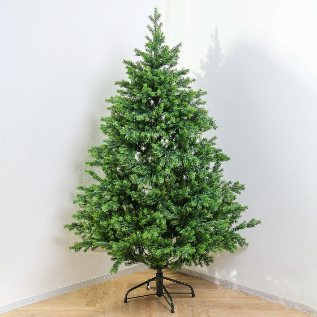 - Высота 210 см и 552 ветки: густая крона, прочная металлическая подставка, диаметр 145 см — удобно для просторных комнат
