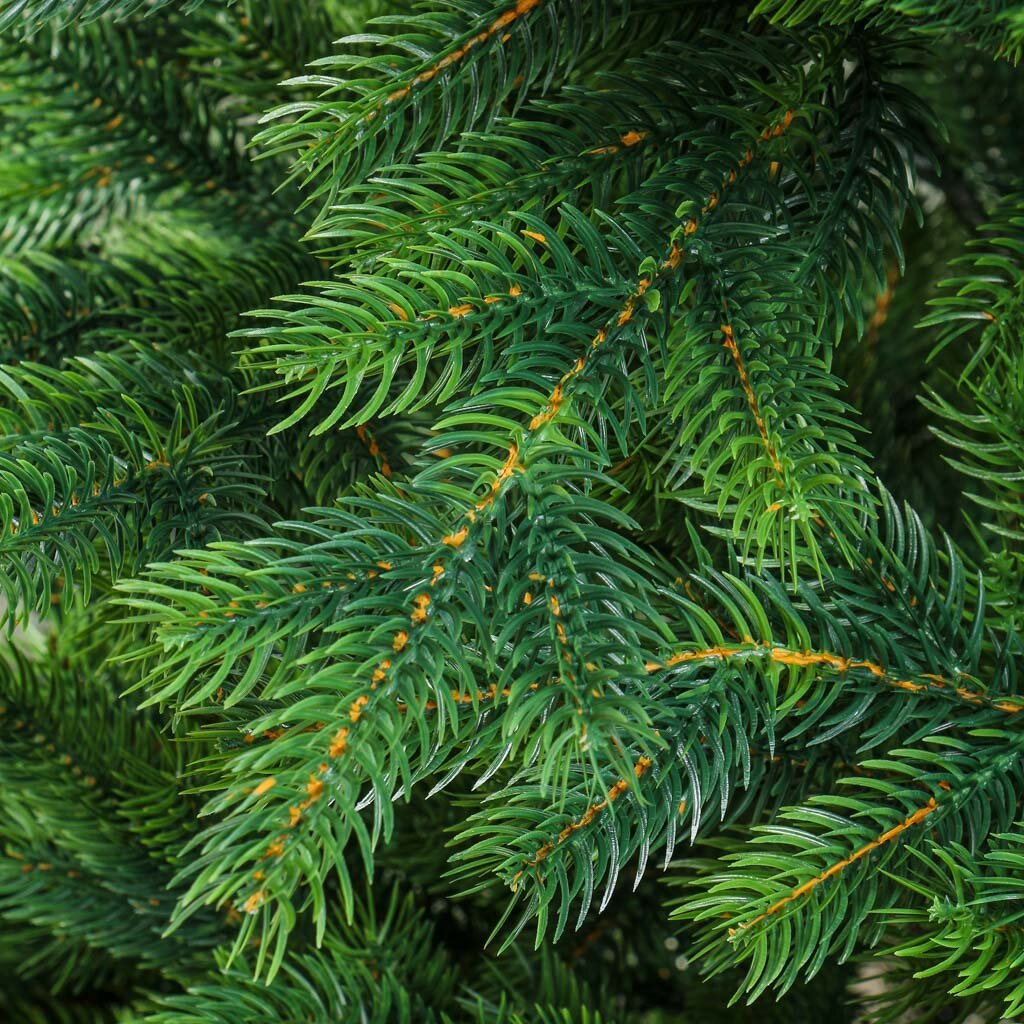 Литая хвоя выглядит как настоящая, не осыпается, не выцветает, безопасна для детей и животных. Такая елка служит дольше, не требует ухода, легко очищается от пыли.