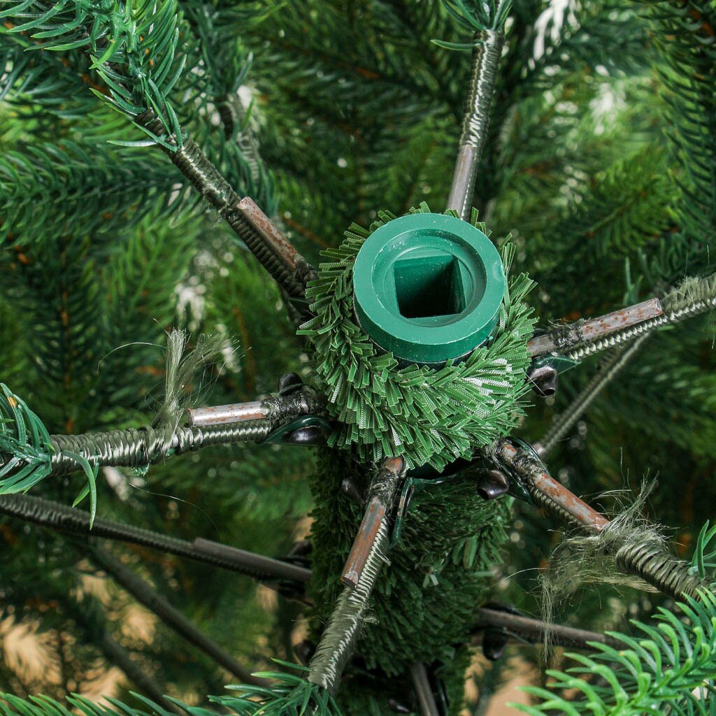 Елка выполнена из прочного полимера, подставка — из металла. Вес изделия — 15,7 кг, количество веток — 552, конструкция разборная, сборка занимает не более 20 минут.