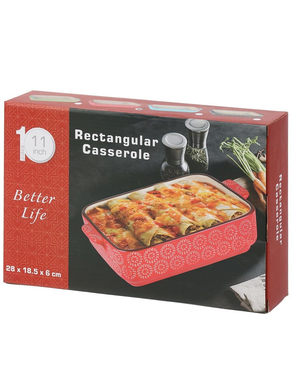 - Оптимальный размер и объём: 28×18,5×6,5 см, вместимость 1,7 л — удобно для пирогов, мясных блюд, кексов и запеканок.