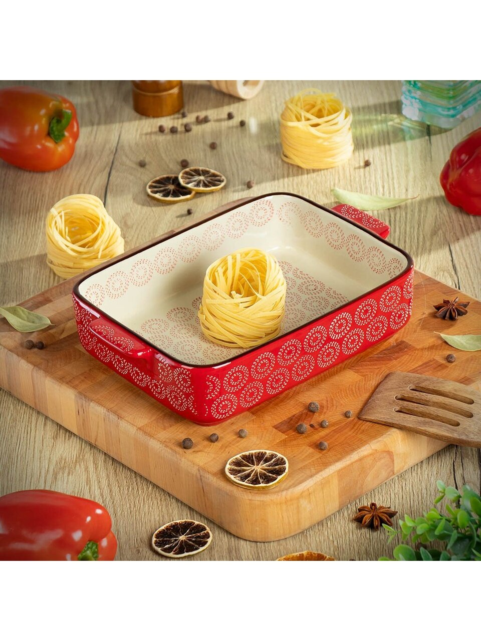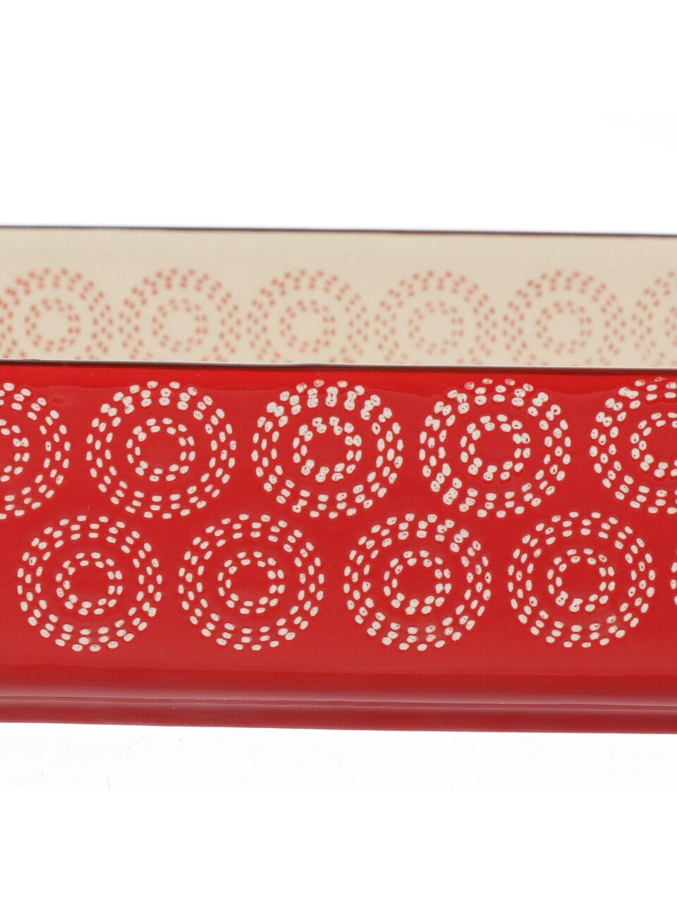 Форма для запекания из керамики 28×18,5×6,5 см «Круги на красном» — стильное решение для вкусной домашней выпечки и запеканок, которое подчеркнёт ваш интерьер и упростит готовку.