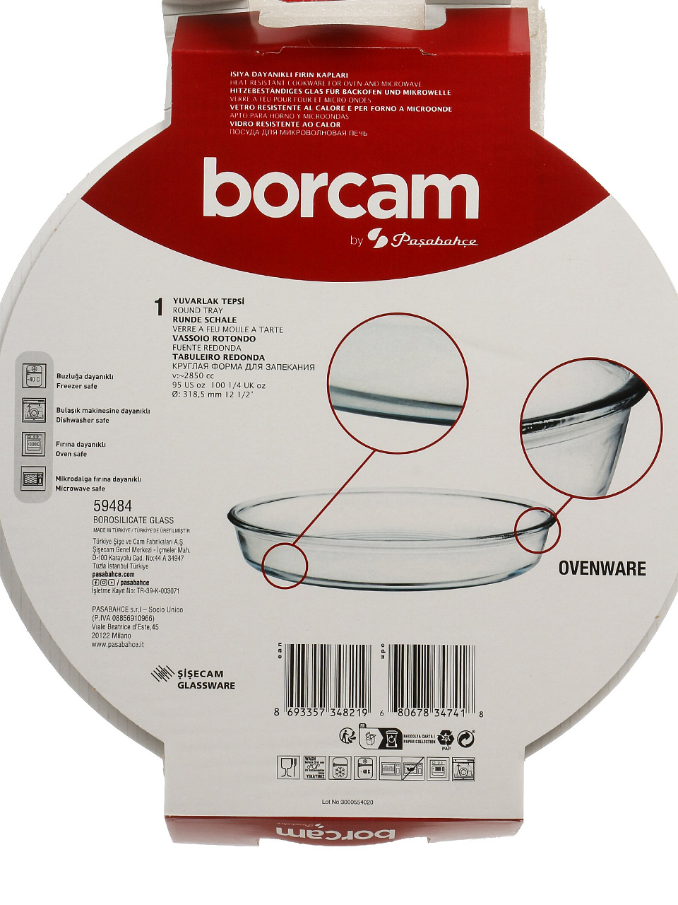 Круглая форма Borcam 31.8 см из жаропрочного стекла — универсальное решение для запекания, пирогов и рыбы. Идеальный выбор для дома и дачи: вместимость 2,85 л, подходит для СВЧ и духовки.