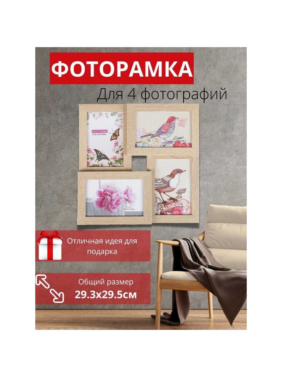 Вы можете приобрести «Фоторамка-коллаж на 4 фото, 29.25х29.5 см, бежевое дерево, Y3-1552» и другие товары в нашем интернет-магазине в Серпухове по низким ценам и с бесплатным самовывозом.
