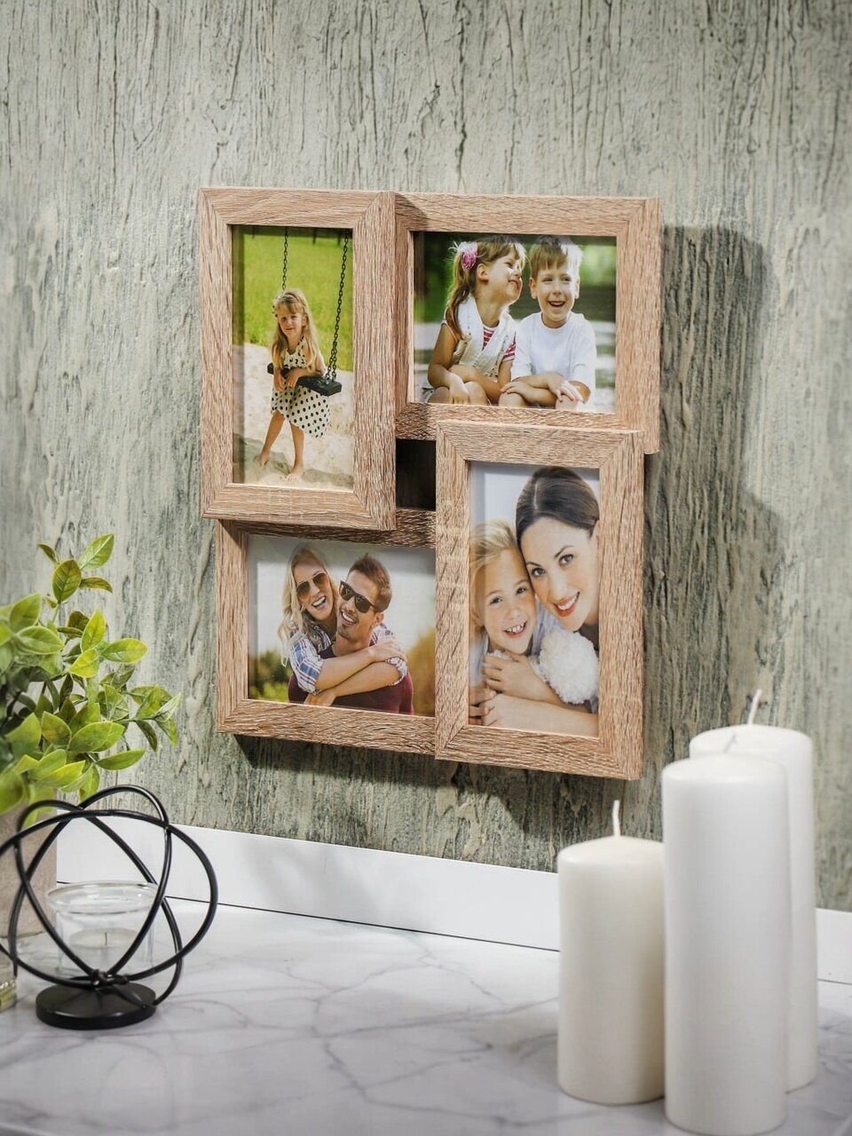 Фоторамки-коллажи — это фоторамки для нескольких фотографий, которые можно повесить на стену или поставить на стол, комод, камин. Фоторамки коллажи удобно организуют в единую композицию ваши фотографии. Настоящая фотогалерея у вас дома! Теперь повесить несколько фотографий на стену и упорядочить их можно не только очень просто, но и очень красиво!