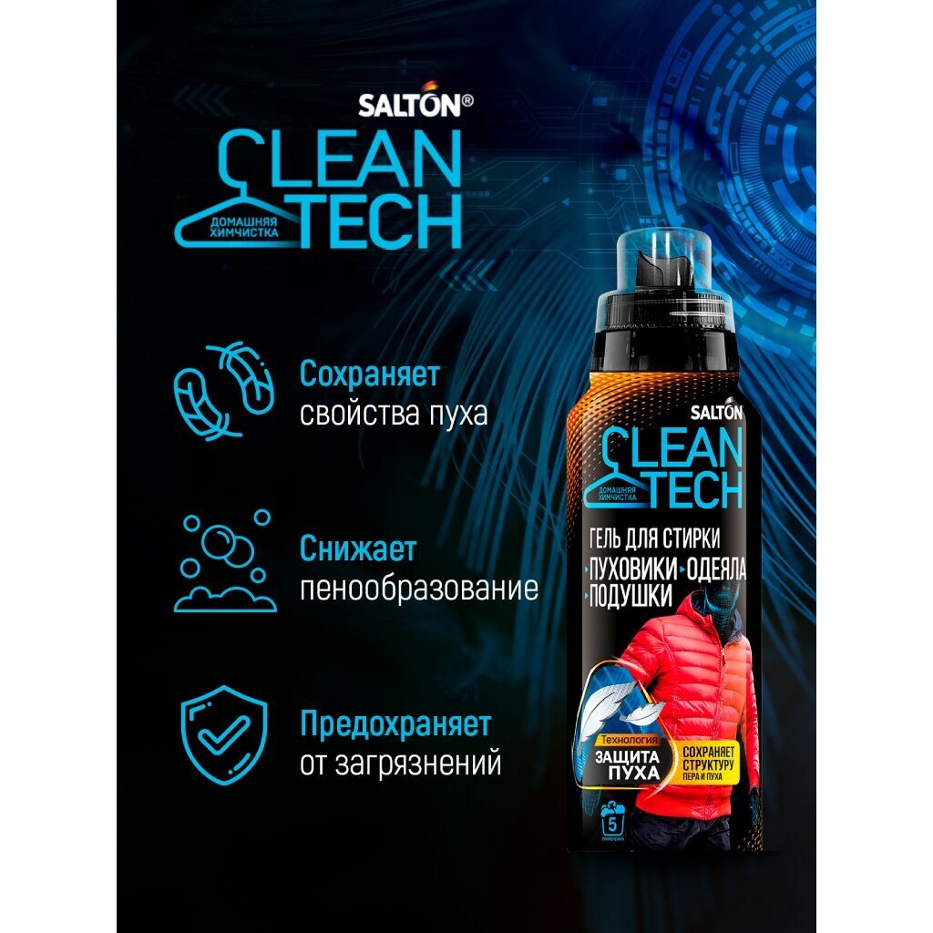 Гель для стирки изделий из пуха Salton CleanTech бережно и эффективно удаляет загрязнения и сохраняет ткани.