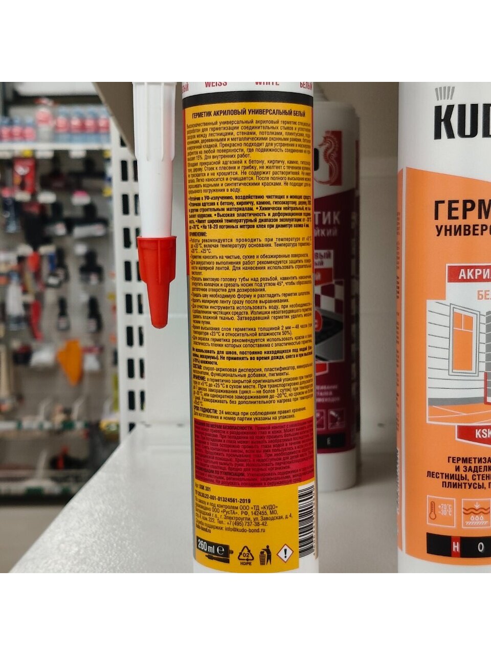 Вы можете приобрести «Герметик акриловый, универсальный, KUDO, DoneWell, DSK-301, 260 мл, белый» и другие товары в нашем интернет-магазине в Иваново по низким ценам и с бесплатным самовывозом.