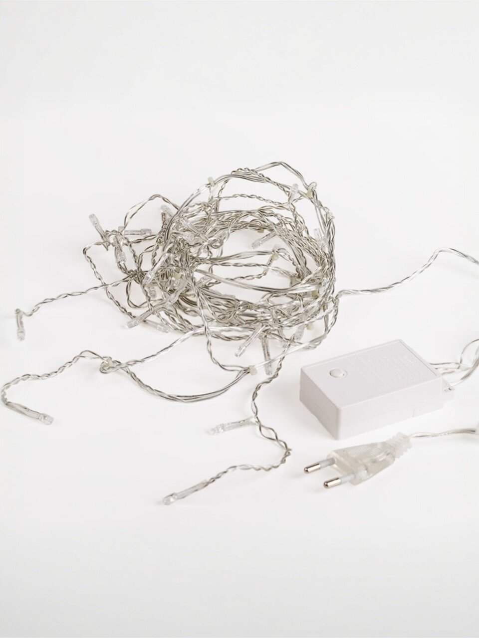 Светодиодная гирлянда «Айсикл» — оригинальное украшение для оформления гардин, ниш, открытых проемов между комнатами, которое выгодно подчеркнет элементы дизайна интерьера и отобразит индивидуальный вкус хозяев дома. Гирлянда выполнена в виде бахромы: на кабеле-основе расположены свисающие нити разной длины (от 10 до 50 см). Серебристый шнур в прозрачной оболочке из ПВХ практически незаметен на общем фоне и, подсвечиваемый 48 диодами, образует гармоничную яркую композицию.