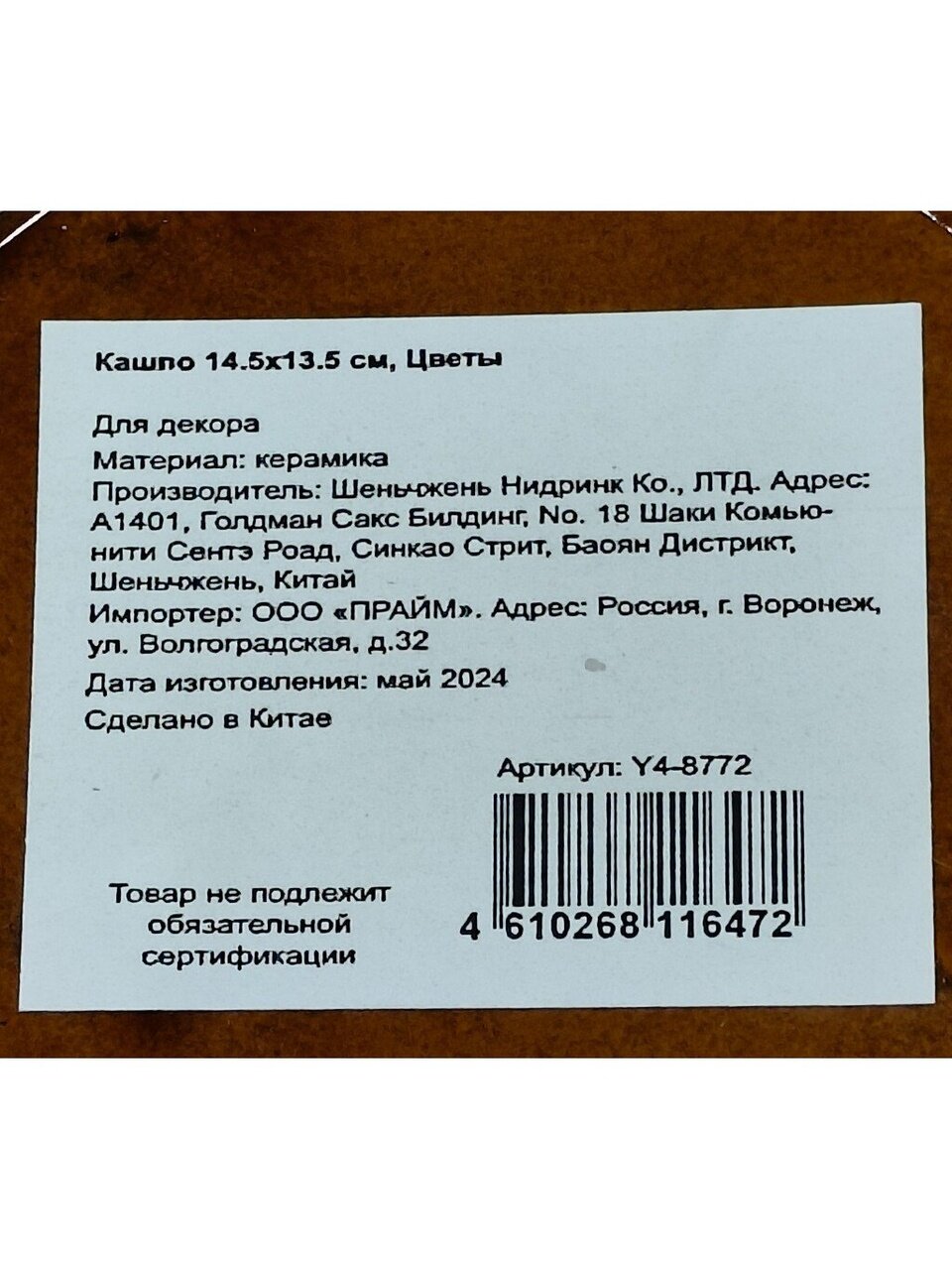 Вы можете приобрести «Горшок керамика, 1.4 л, 14.5х13.5 см, коричневый, Цветы, Y4-8772» и другие товары в нашем интернет-магазине в Казани по низким ценам и с бесплатным самовывозом.