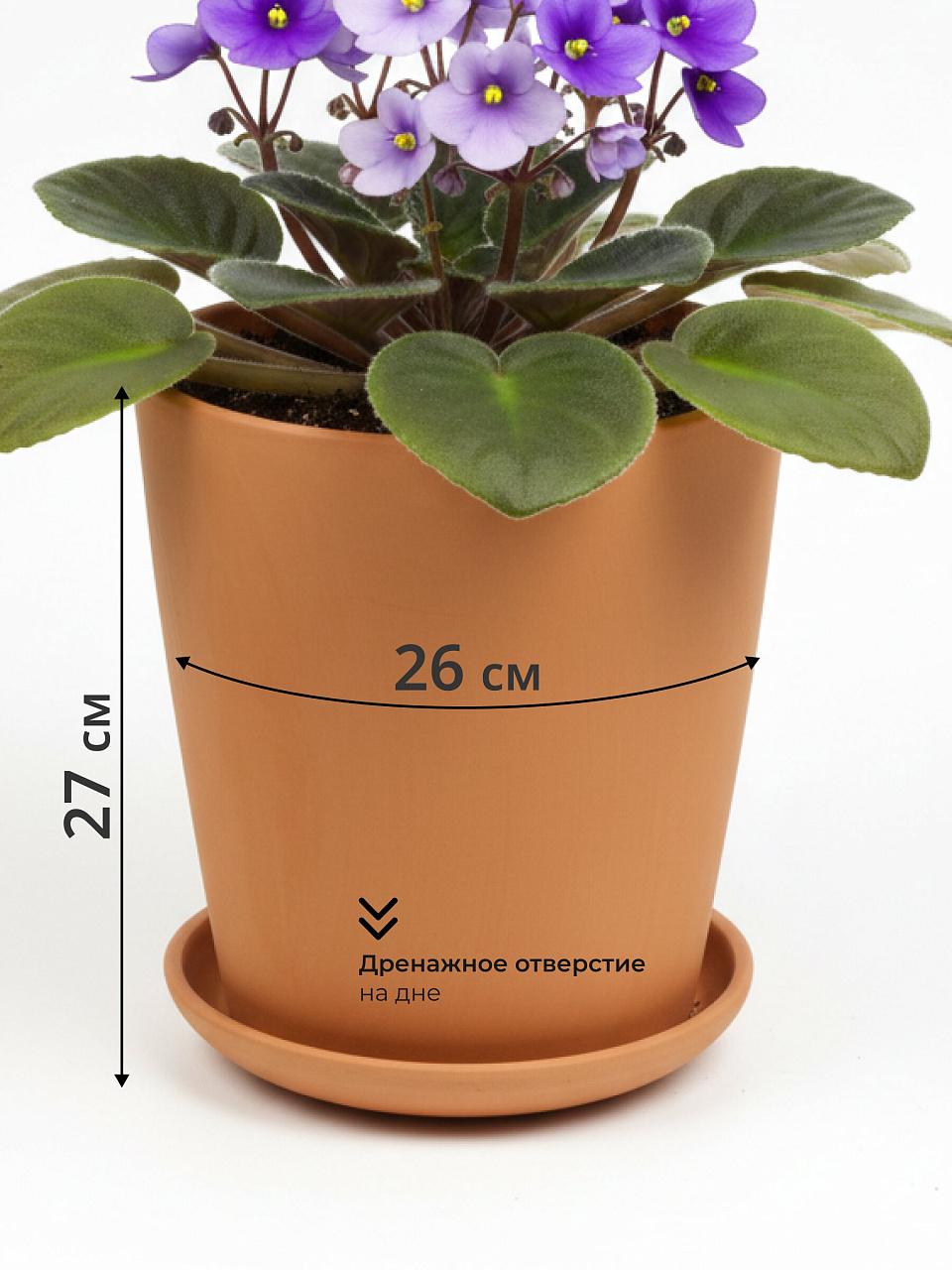 Керамика всегда была символом элегантности и долговечности. Этот горшок, благодаря своим размерам 26х27 см и диаметру 26 см, подходит для размещения как небольших, так и средних растений. Он станет отличным выбором для тех, кто ценит качество и стиль в каждой детали.