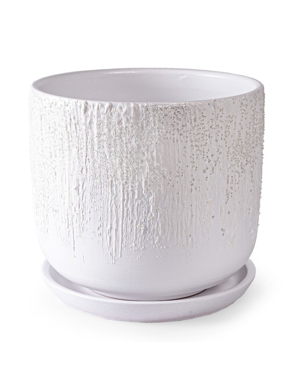 Горшок керамический 1.6 л «Айсберг №3» — стильное решение для суккулентов и фиалок, белый цилиндр с дренажом и поддоном, купить недорого для дома и подарка.