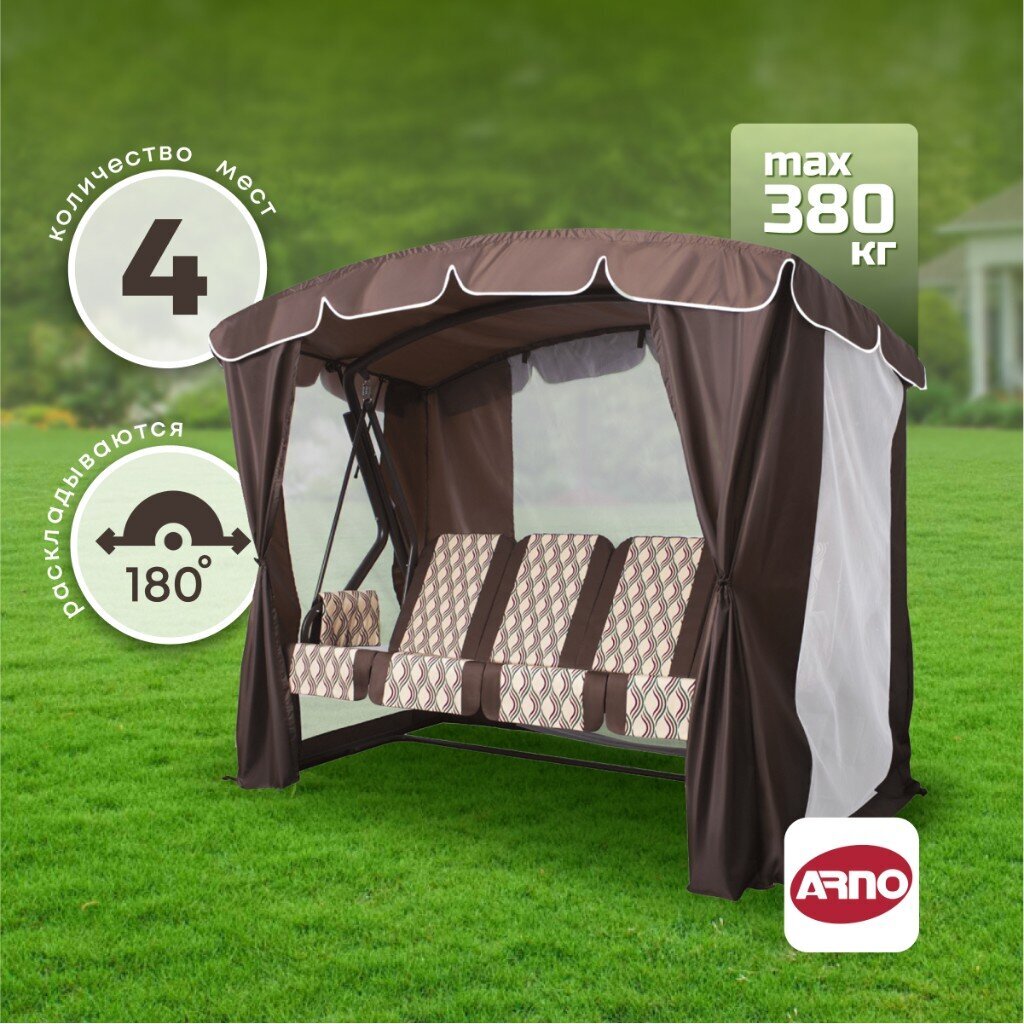 Садовые качели Arno "Оазис Люкс+" рассчитаны на четыре человека и способны выдержать нагрузку до 380 кг, что делает их идеальными для семейного отдыха. Размеры качелей (232х125х195 см) позволяют удобно разместиться, а возможность раскладывания в кровать добавляет универсальности. Москитная сетка в комплекте защитит от назойливых насекомых, обеспечивая комфорт даже в вечернее время.