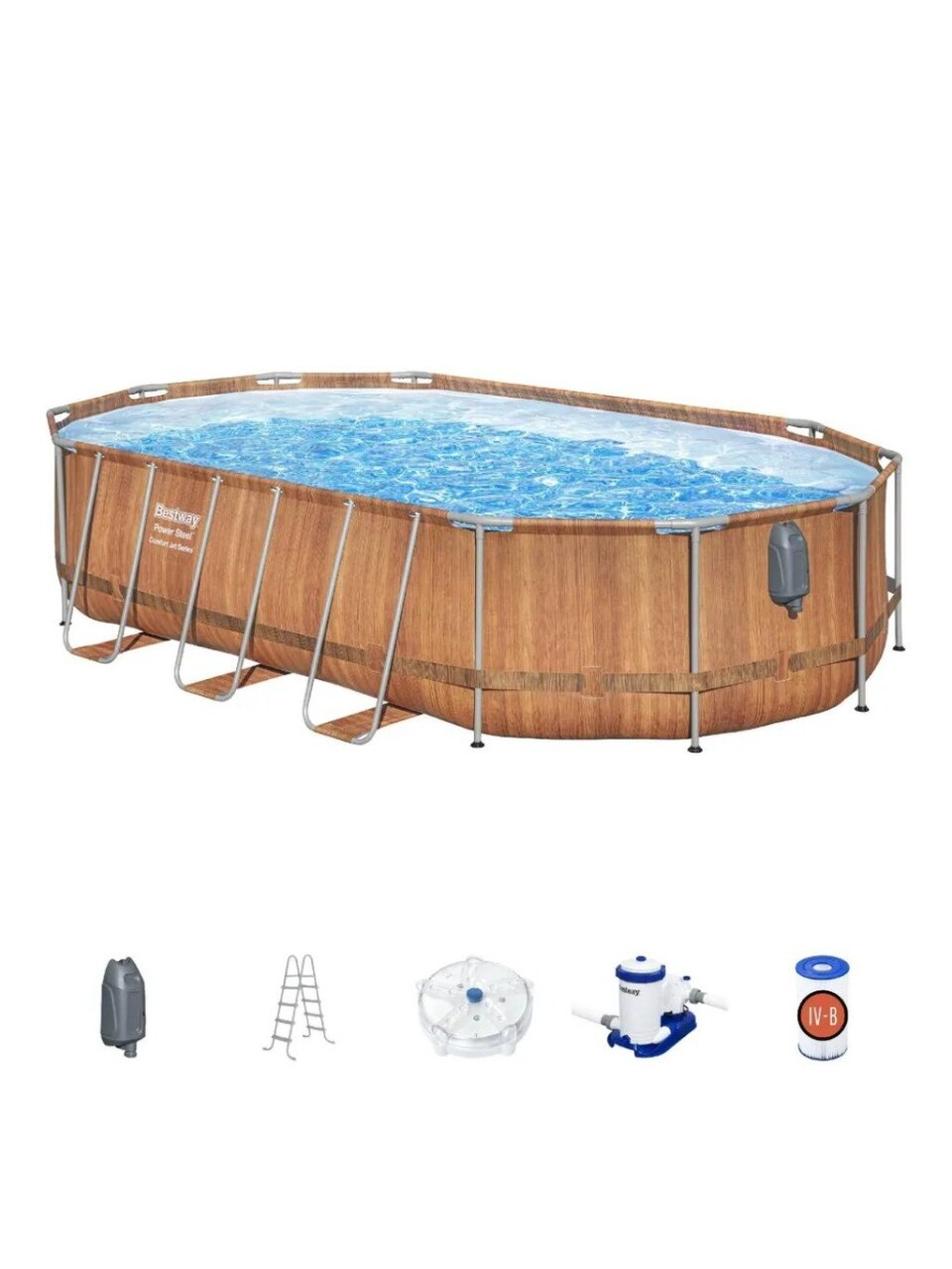 - Комфорт и удобство: в комплекте идет лестница высотой 122 см, что позволяет легко и безопасно входить и выходить из бассейна.