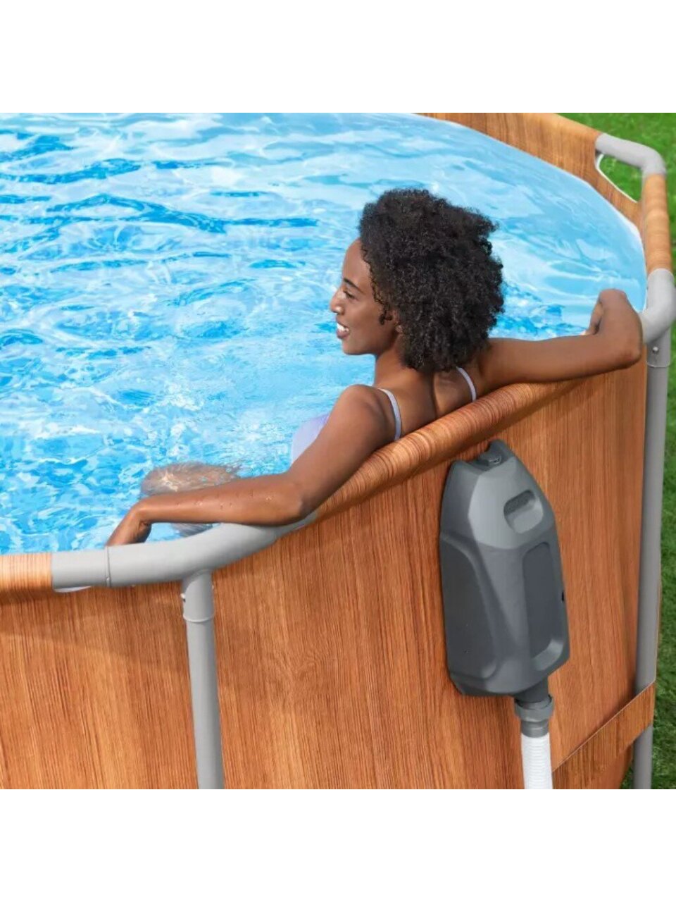 - Эффективная фильтрация: картриджный фильтр с производительностью 9463 л/ч поддерживает чистоту и прозрачность воды.