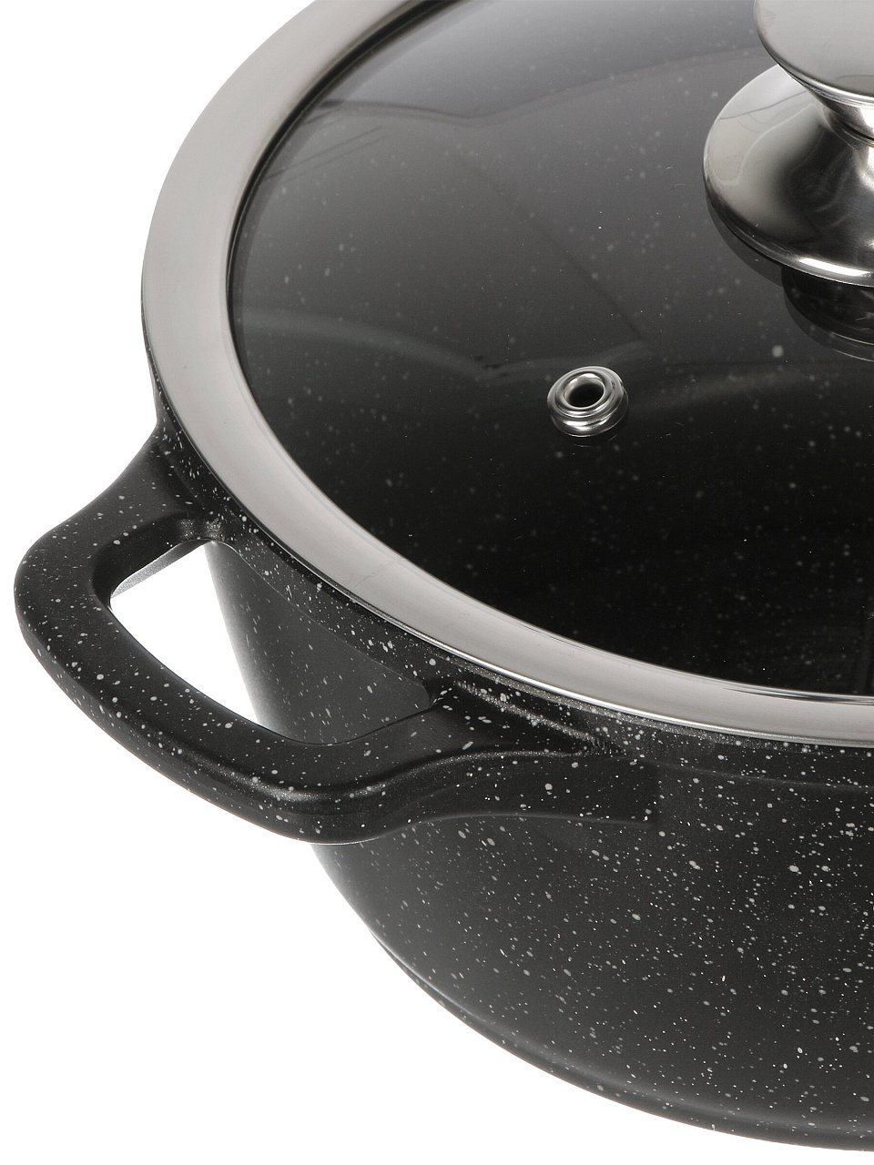 Объём 2 литра, литые ручки для удобства, алюминий с антипригарным покрытием, стеклянная крышка в комплекте. Оптимально для семьи из 2-3 человек.