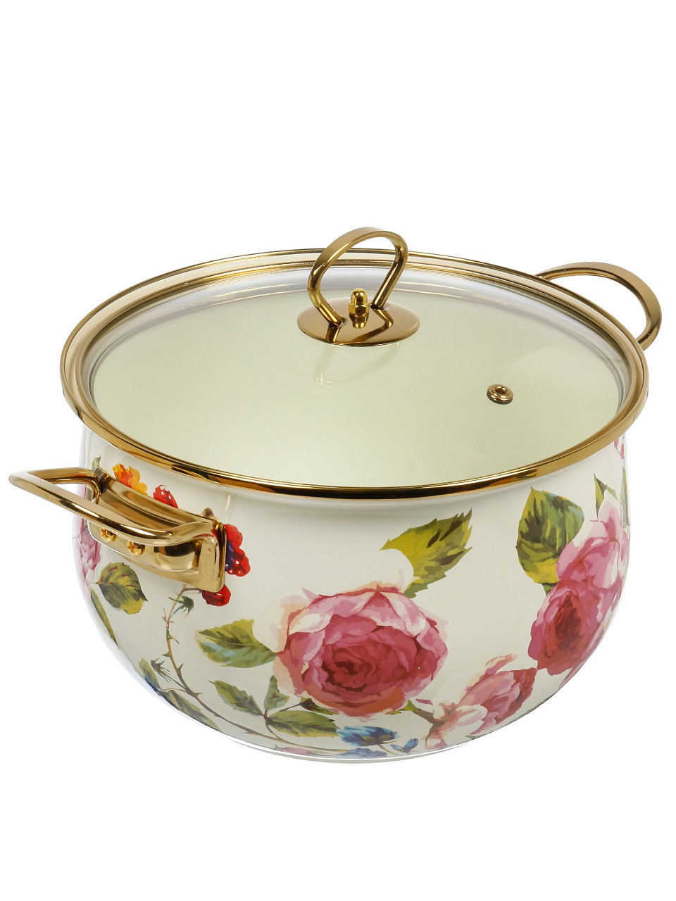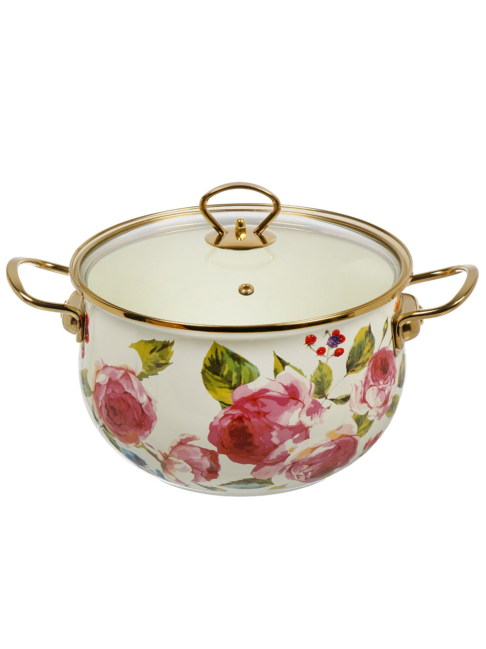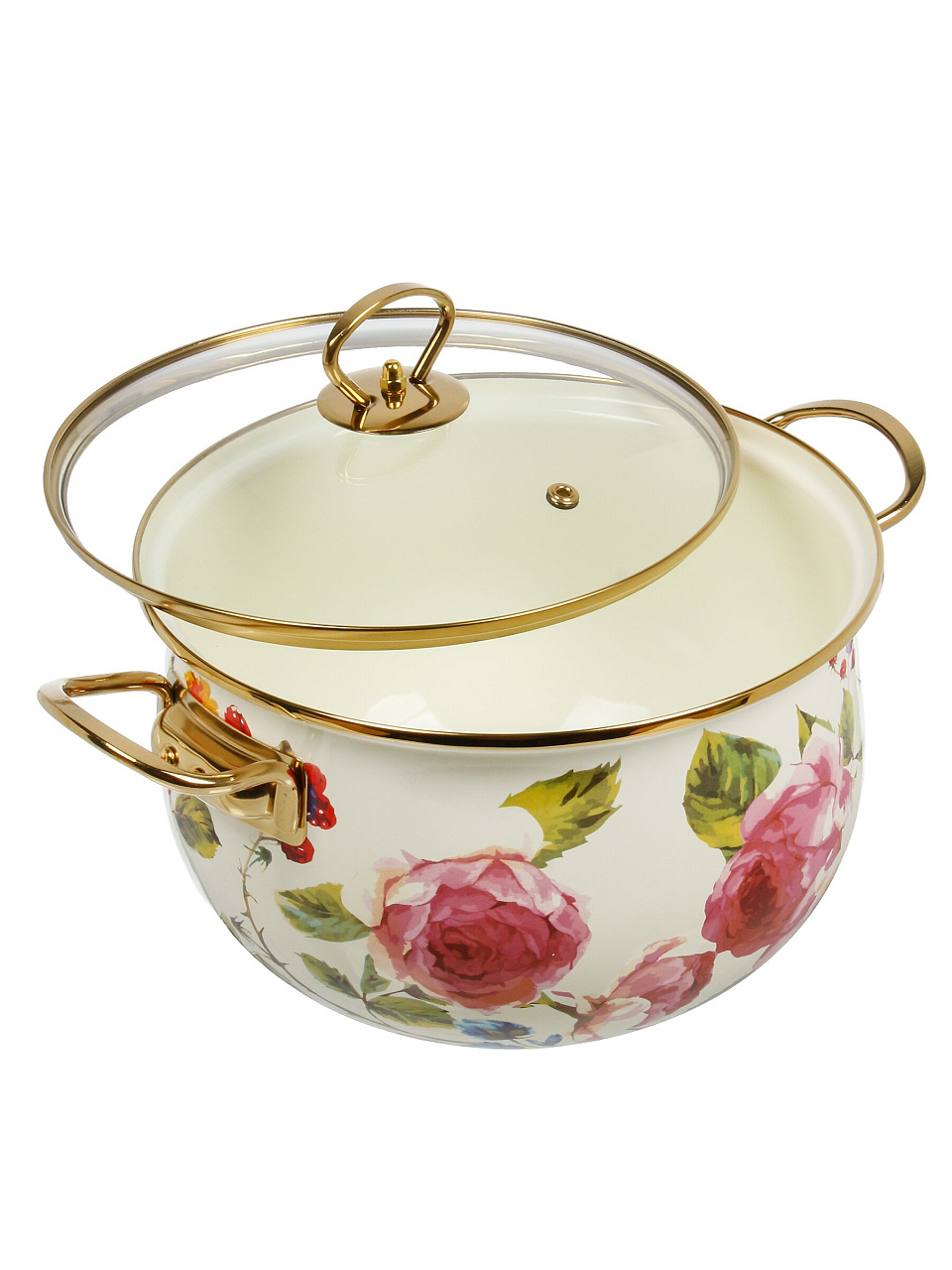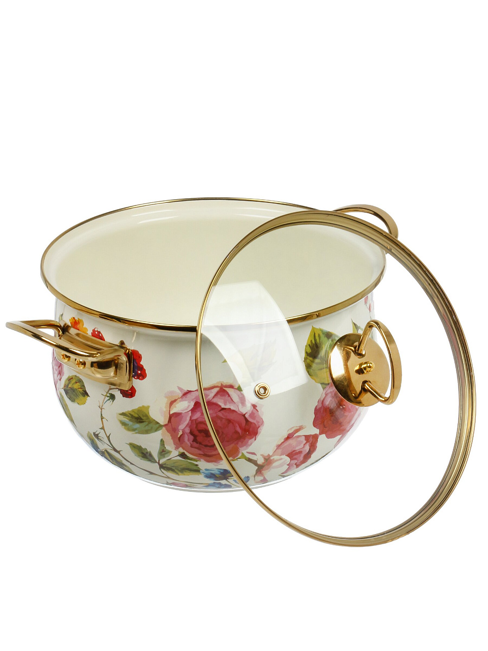 - Объем 5 л, диаметр 24 см, прочная эмалированная сталь и крышка из закалённого стекла с выпускным клапаном — долговечность и безопасность на каждый день.