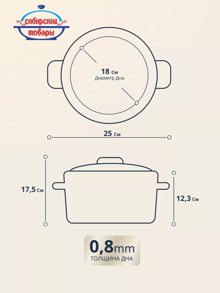 Кастрюля из эмалированной стали "Сибирские товары Рамо" (3 л, артикул 3MD181M) — это надёжный выбор для ежедневного приготовления супов, каш, макарон, пюре и пельменей. Благодаря цилиндрической форме и плоскому дну она равномерно нагревается и отлично подходит для всех типов плит: газовых, электрических, стеклокерамических и индукционных. Если вы ищете, какую кастрюлю выбрать для индукционной плиты или как выбрать кастрюлю для дачи, обратите внимание на эту модель — она универсальна и долговечна.