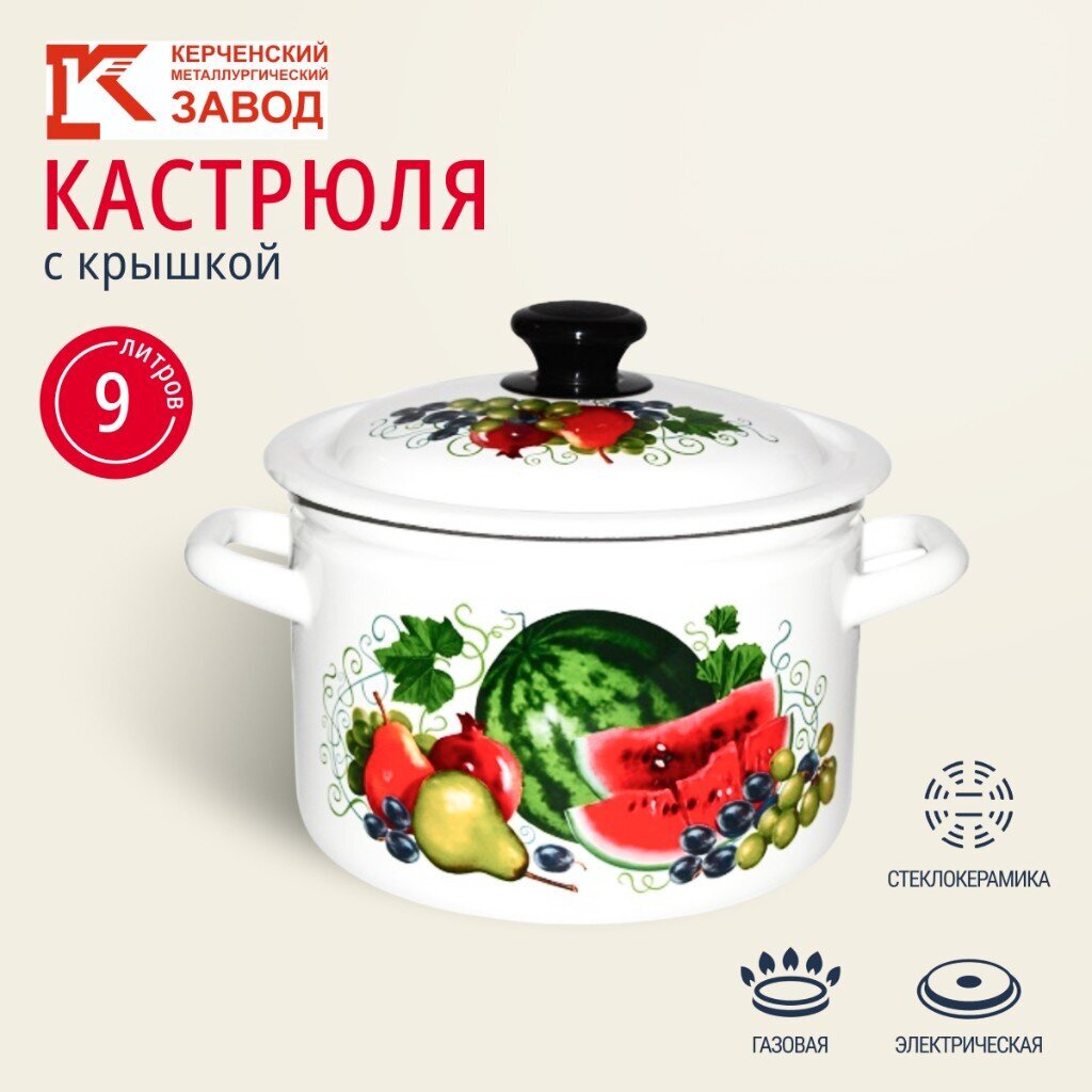 Кастрюля эмалированная 9 л Керченский завод: оптимальный выбор для больших семей и дачи, прочная сталь, долговечность до 24 месяцев гарантии.