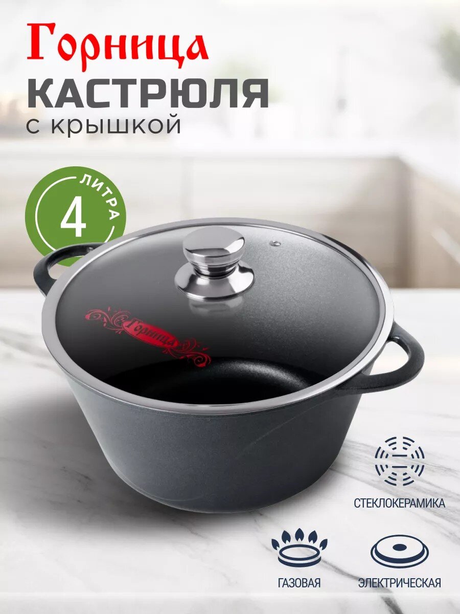 Вы можете приобрести «Кастрюля алюминий, антипригарное покрытие, 4 л, крышка стекло, Горница, Классик, к2633а» и другие товары в нашем интернет-магазине в Иваново по низким ценам и с бесплатным самовывозом.