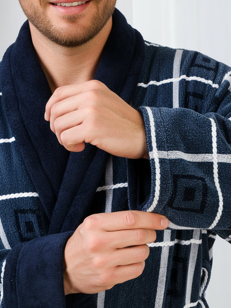 Мужской махровый халат Silvano XL (52-54), 100% хлопок, синяя клетка — комфорт и стиль для дома и дачи по выгодной цене.