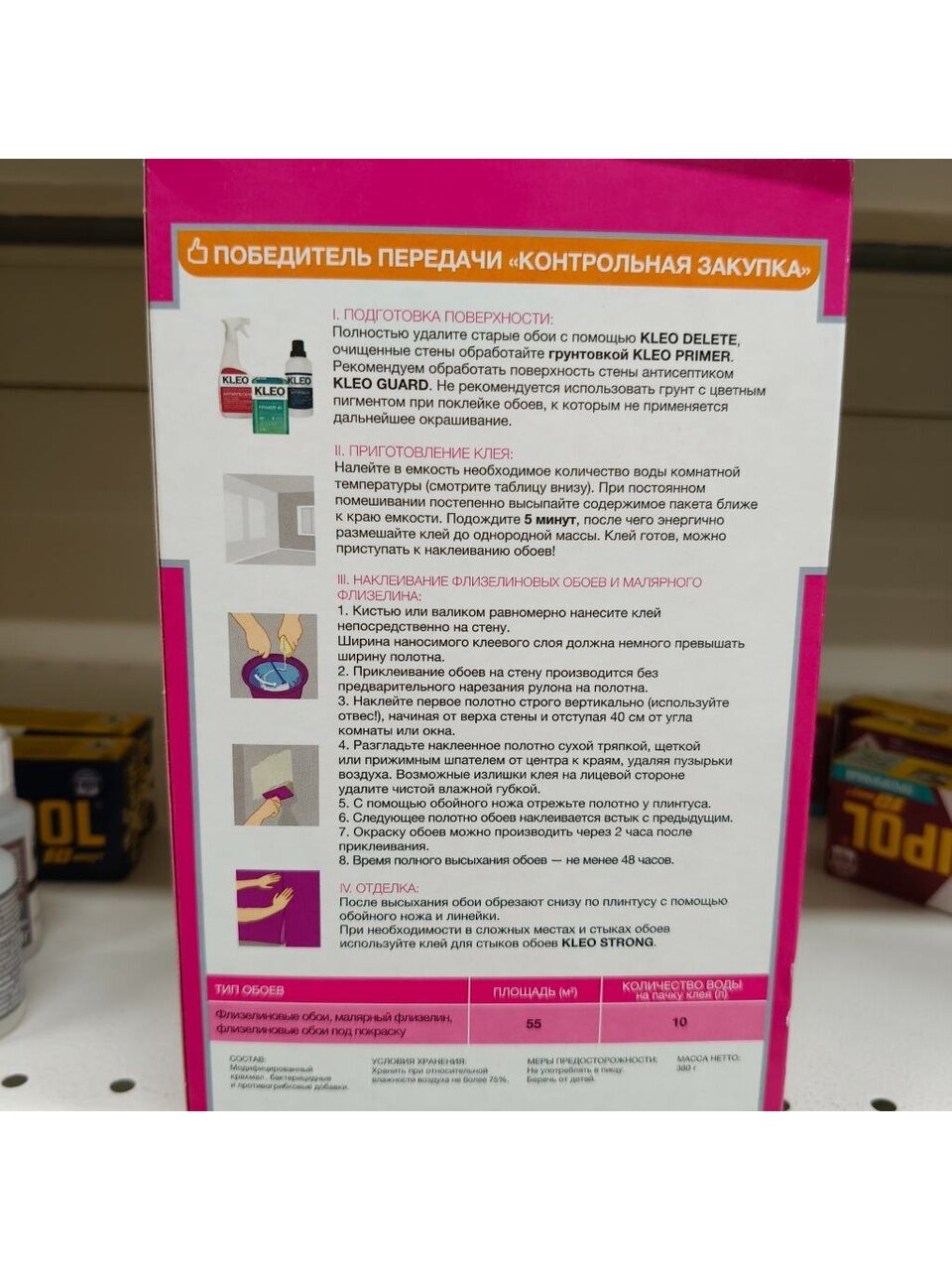 Вы можете приобрести «Клей для флизелиновых обоев, Kleo, Extra, 55 кв.м., 380 г, 030 EXTRA 55» и другие товары в нашем интернет-магазине в Смоленске по низким ценам и с бесплатным самовывозом.
