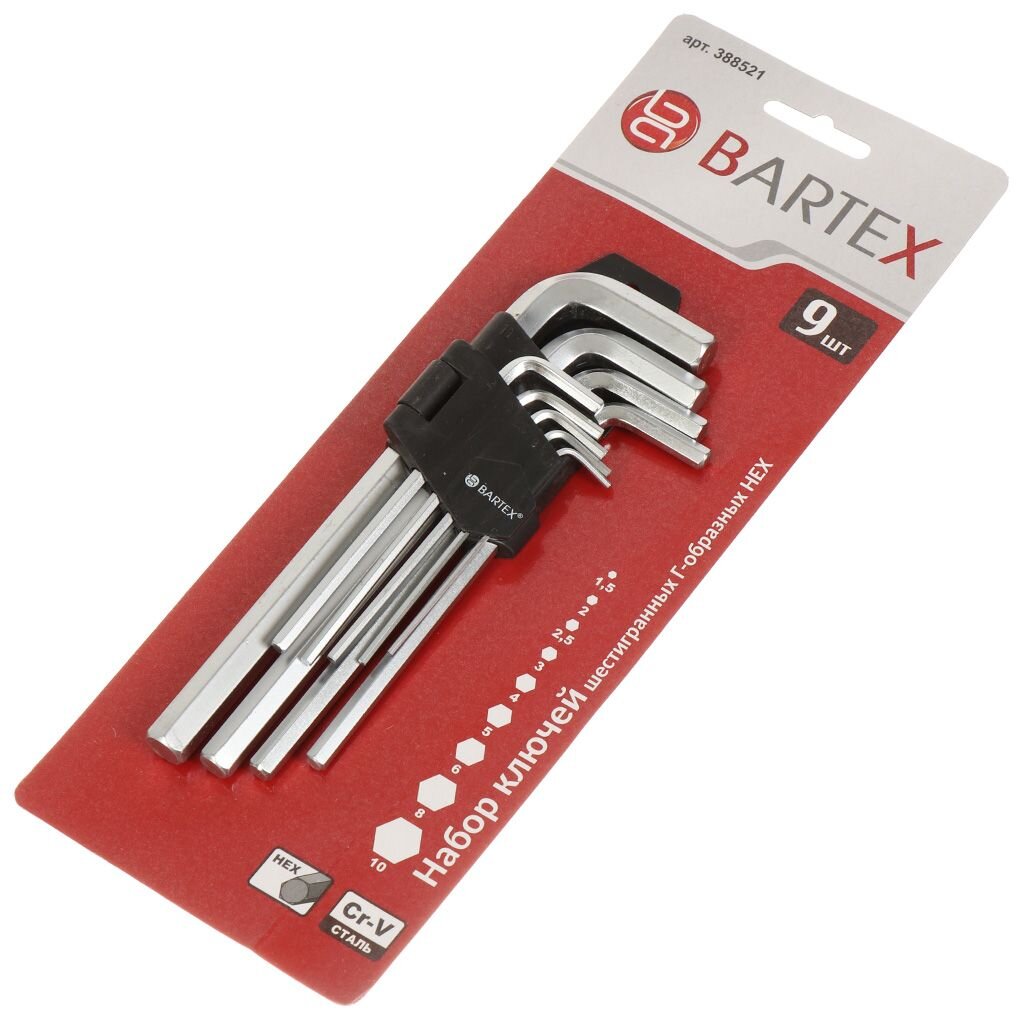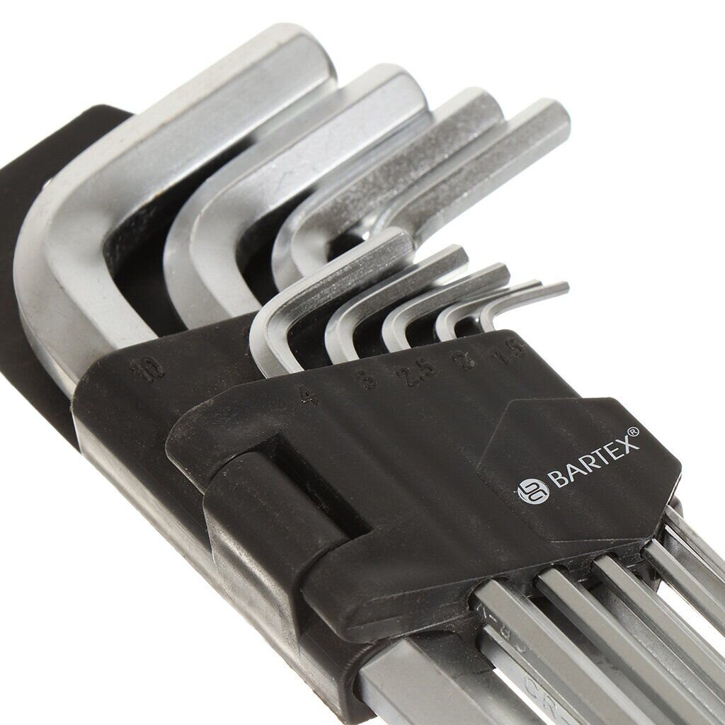 Набор Bartex из 9 Г-образных ключей предназначен для слесарно-монтажных работ. Такие инструменты со специальным шлицом в форме шестигранника отлично справляются с раскручиванием и закручиванием крепежных элементов.