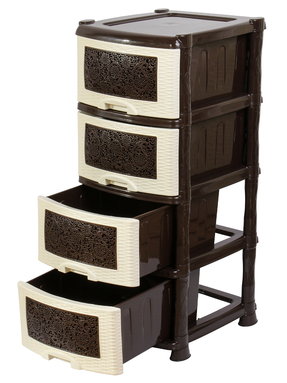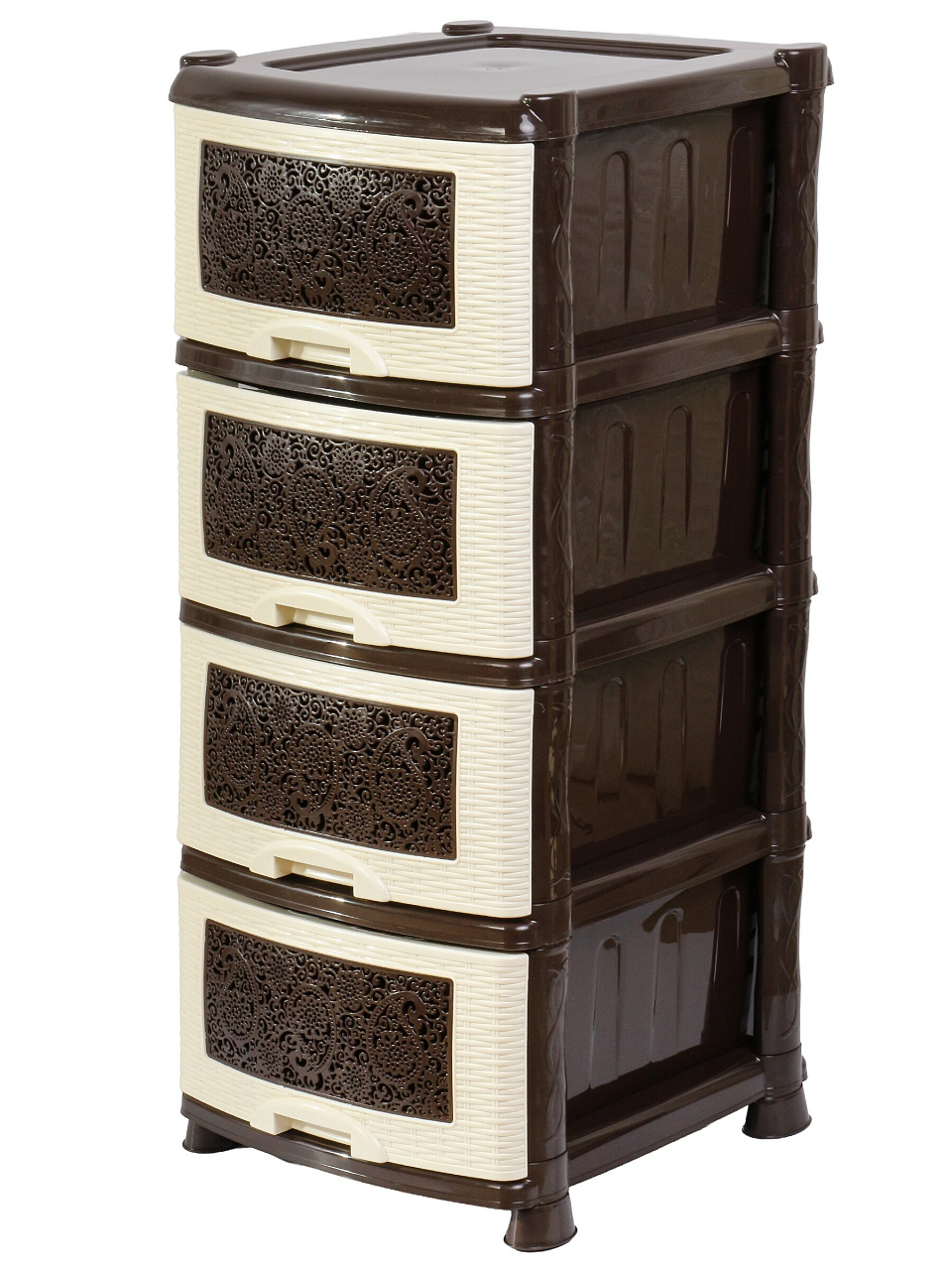 Комод с 4 ящиками «Ажур» 47х39х95 см от Violet — компактное решение для хранения вещей дома и на даче: экономьте место и наводите порядок без лишних затрат.
