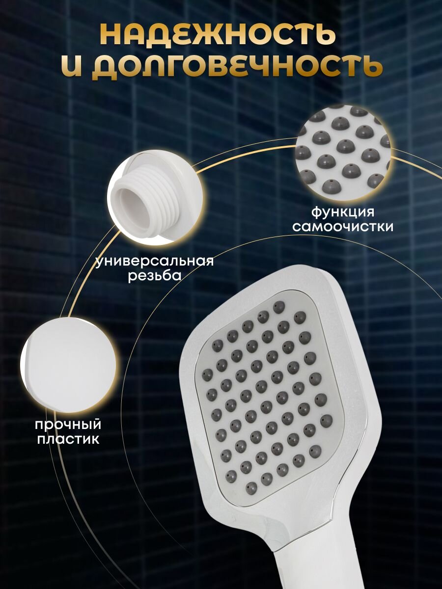 Лейка для душа выдаёт узконаправленный напор из отверстий, благодаря чему не происходит излишнего разбрызгивания, предотвращая распространение капель воды на пол и окружающие предметы, что поможет сохранить ванную комнату сухой и чистой.