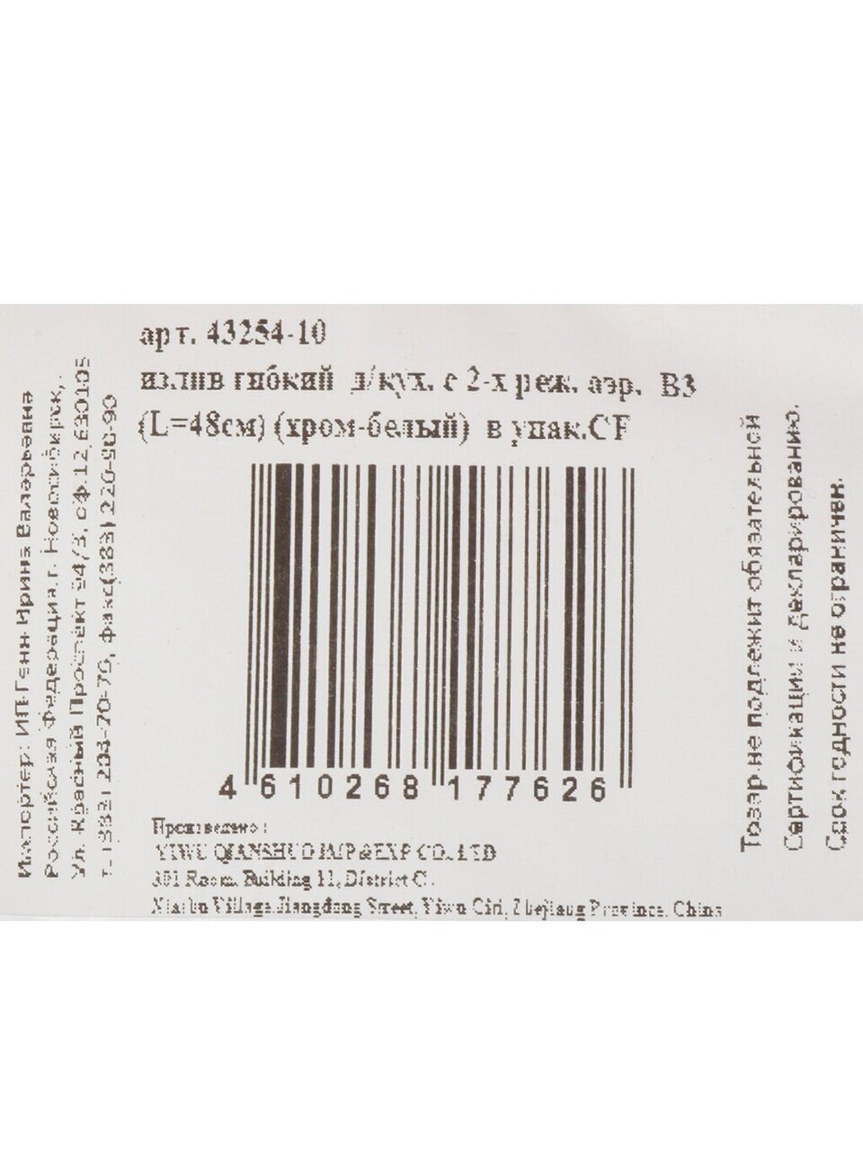 Излив ComfortFactor 43254-10 помогает сделать кухонные процессы более удобными и быстрыми, снижая утомляемость и повышая производительность. Благодаря надежности и эргономичному дизайну, ежедневное использование становится проще и приятнее. Выбор этого аксессуара — это инвестиция в комфорт, функциональность и современный внешний вид кухни. Получите максимальное удобство и эстетическое удовольствие от водных процедур, используя качественный гибкий излив от ComfortFactor.