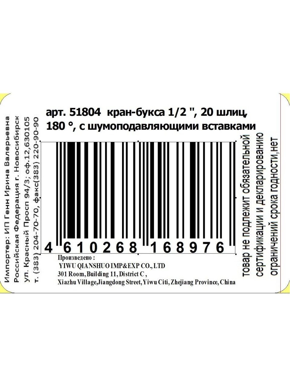 Вы можете приобрести «Кран-букса 1/2 '', 20 шлиц, 180 °, 2 резьбы, с керамическими вставками, 65 г, ComfortFactor, 51804» и другие товары в нашем интернет-магазине в Ставрополе по низким ценам и с бесплатным самовывозом.