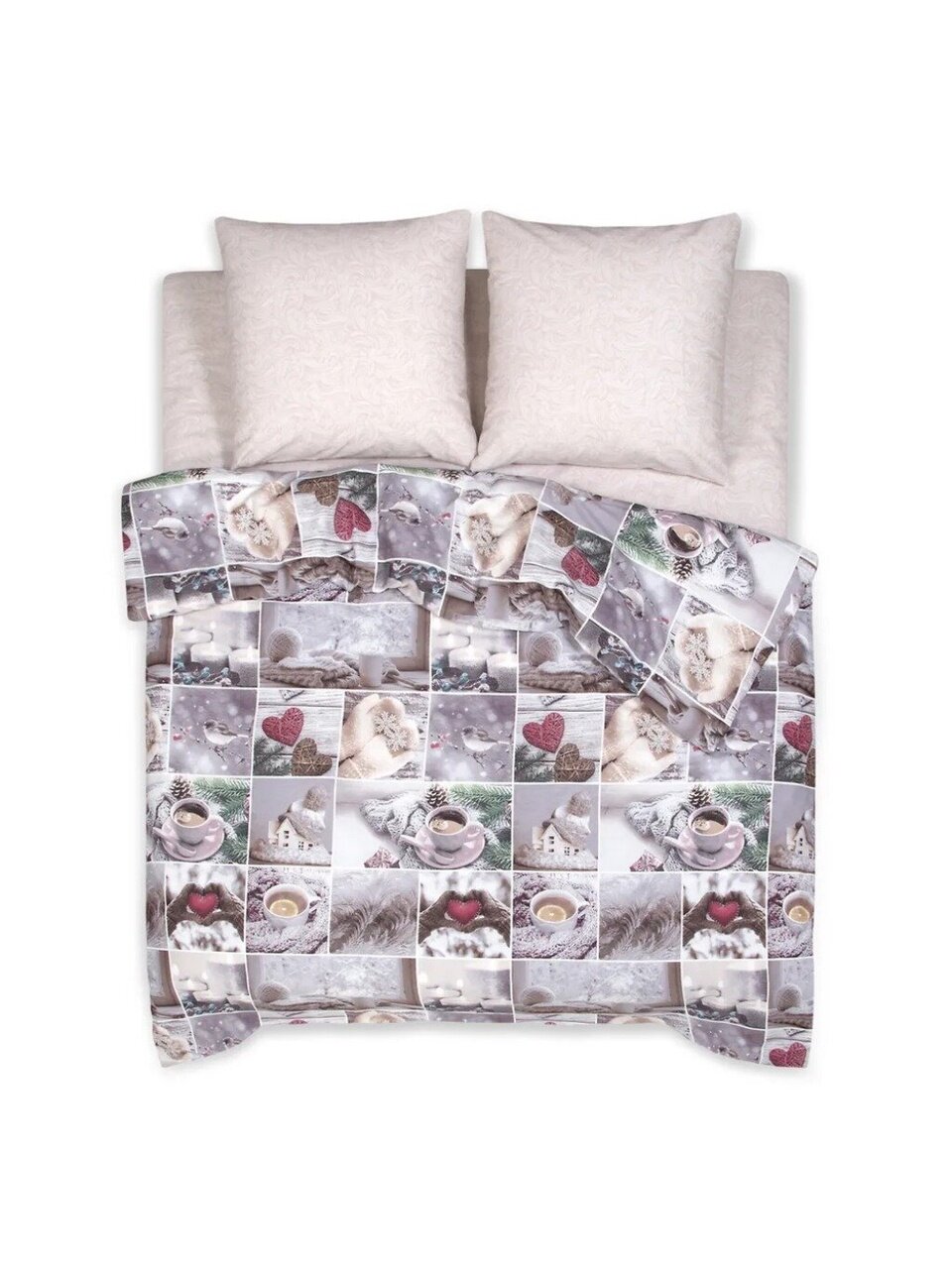 Постельное белье 2-спальное АртПостель «Домашний уют 504»: хлопковая бязь, серый дизайн, комплект 4 предмета — идеальный подарок и уют для зимних ночей.