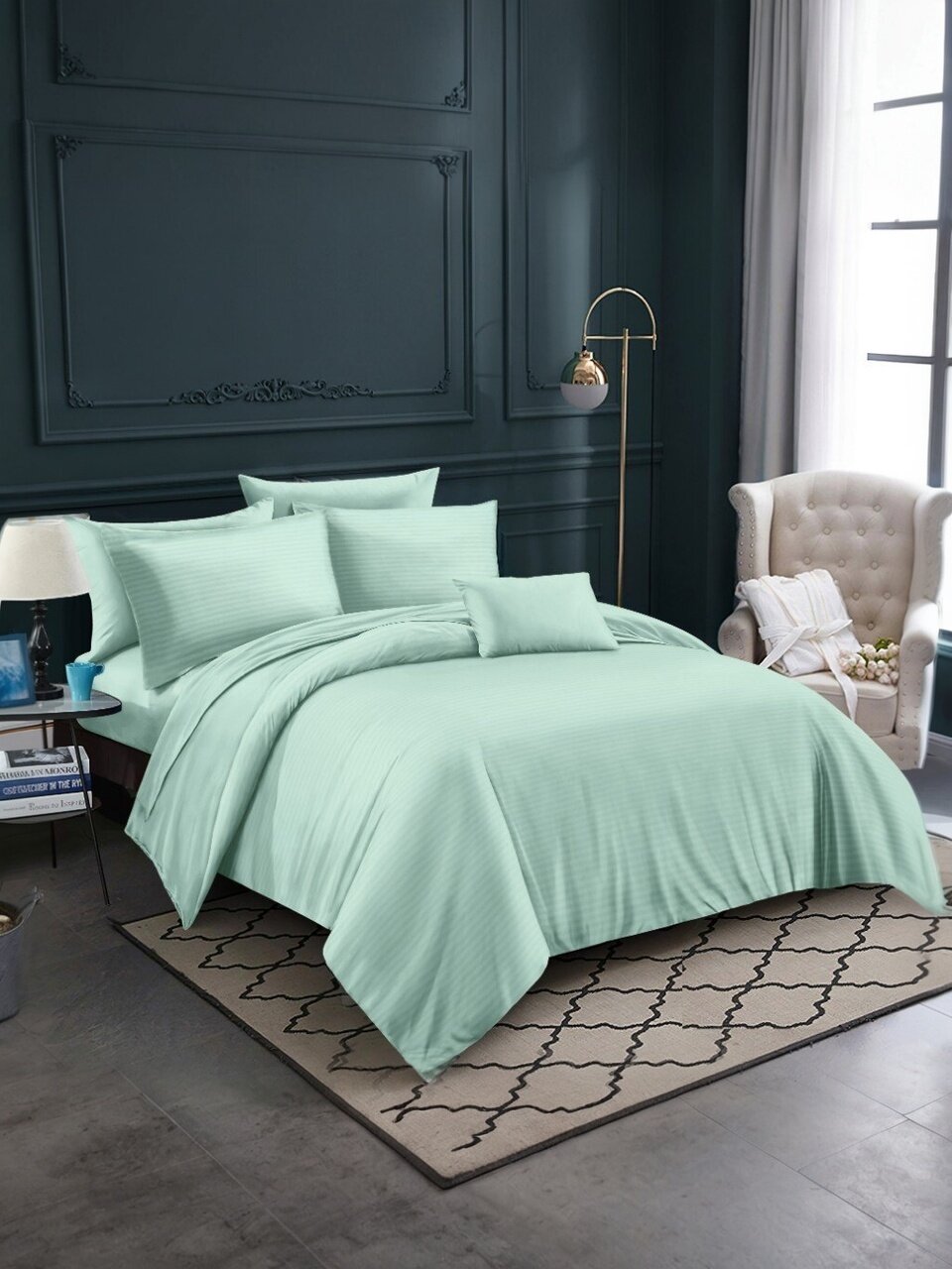 Двуспальное постельное белье «Майская ночь» из страйп-полисатина: мятный цвет, премиальный комфорт, идеальный подарок для дома и дачи.