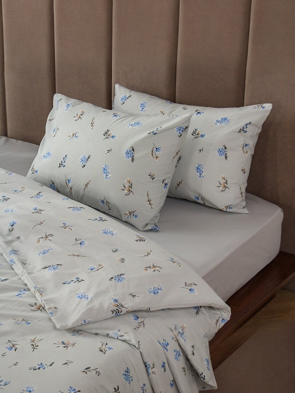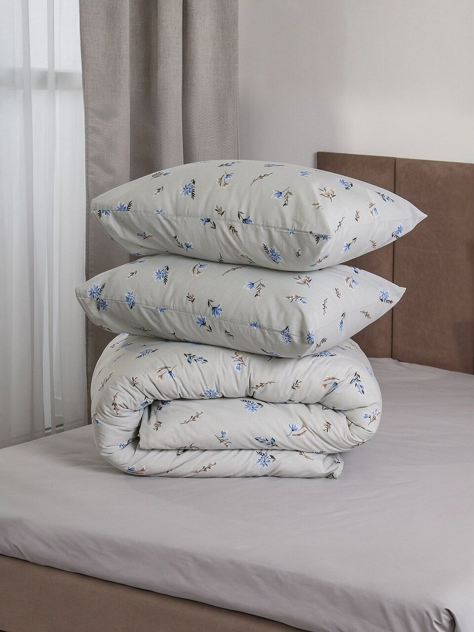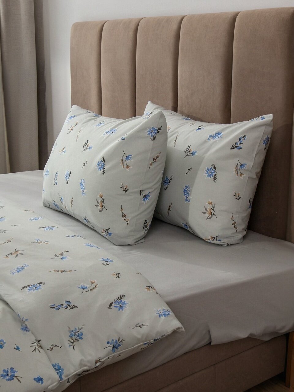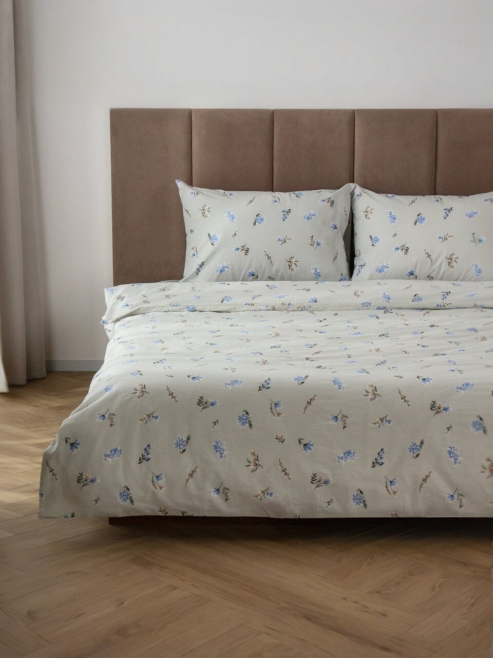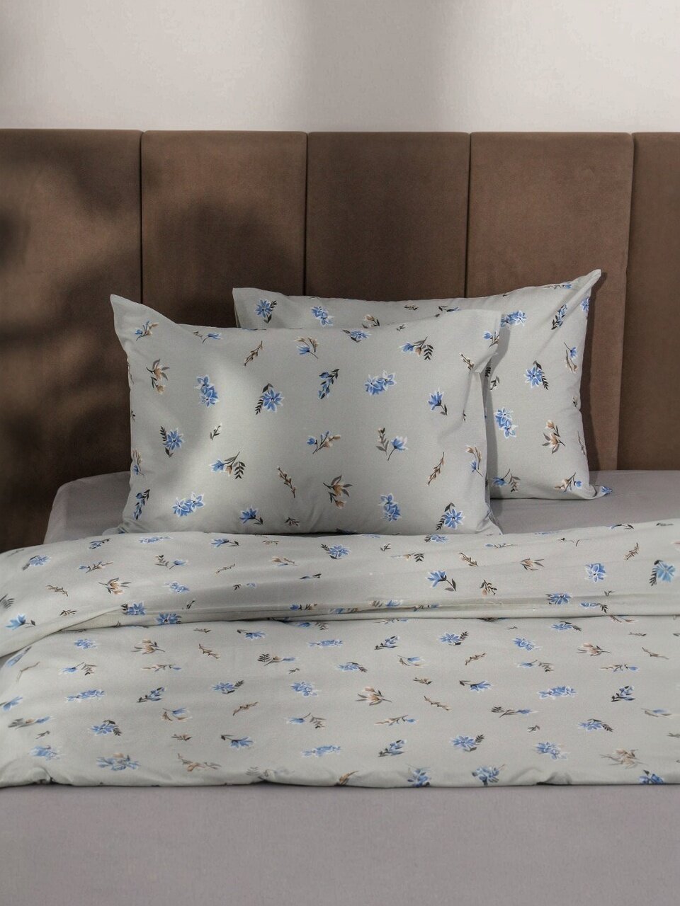 Постельное белье 1.5-спальное Silvano 20463 из поплина: свежий серый дизайн с цветами, 100% хлопок, 2 наволочки 50х70, идеальный подарок и комфорт для сна.