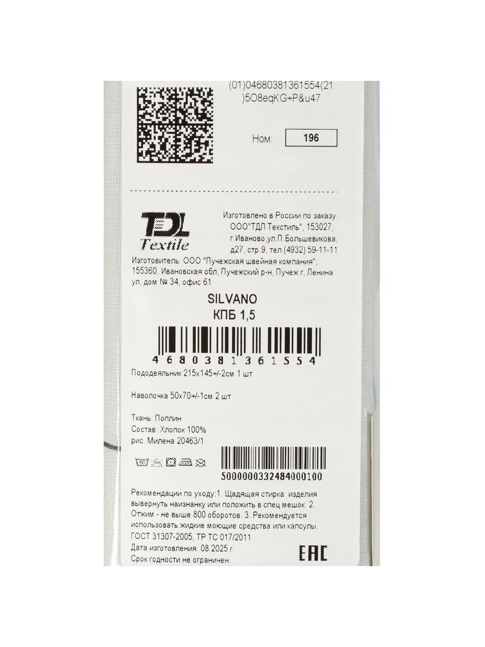 Вы можете приобрести «Постельное белье 1.5-спальное, 2 наволочки 50х70 см, пододеяльник 145х215 см, Silvano, поплин, 20463» и другие товары в нашем интернет-магазине в Белгороде по низким ценам и с бесплатным самовывозом.